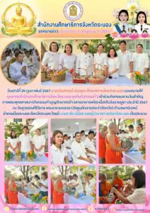 วันเสาร์ที่ 24 กุมภาพันธ์ 2567 นางณันศภรณ์ นิลอรุณ ศึกษาธิการจังหวัดระนอง มอบหมายให้บุคลากรสำนักงานศึกษาธิการจังหวัดระนอง ชุดทีมกิจกรรมที่ 3 เข้าร่วมกิจกรรมงานวันสำคัญ ทางพระพุทธศาสนา (กิจกรรมทำบุญตักบาตรข้าวสารอาหารแห้ง) เนื่องในวันมาฆบูชา ประจำปี 2567 ณ วัดสุวรรณคีรีวิหาร พระอารามหลวง (วัดศูนย์กลางประจำจังหวัด) ตำบลเขานิเวศน์ อำเภอเมืองระนอง จังหวัดระนอง โดยมี นายราชัน มีน้อย รองผู้ว่าราชการจังหวัดระนอง เป็นประธาน