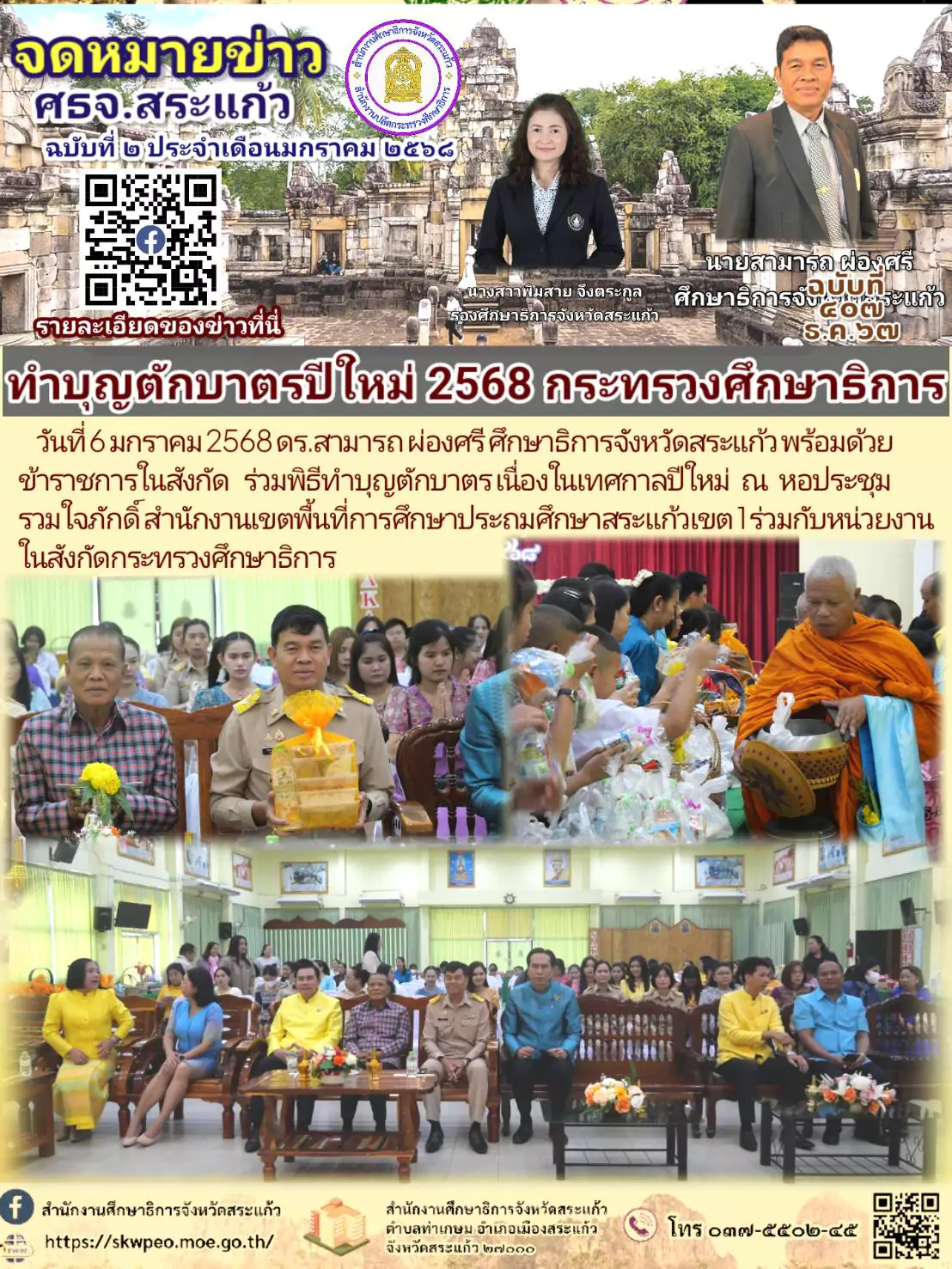 13 พ.ย. 68 (ศธจ.สระแก้ว) เป็นประธานการประชุม เพื่อชี้แจงแนวทางการปฏิบัติงาน รวมทั้งร่วมกันกำหนด “ปัญหาที่อยากแก้ “ความดีที่อยากทำ” ภายใต้คุณธรรมที่พึงประสงค์ 5 ประการ ประกอบด้วย พอเพียง วินัย สุจริตจิตอาสาและกตัญูญ