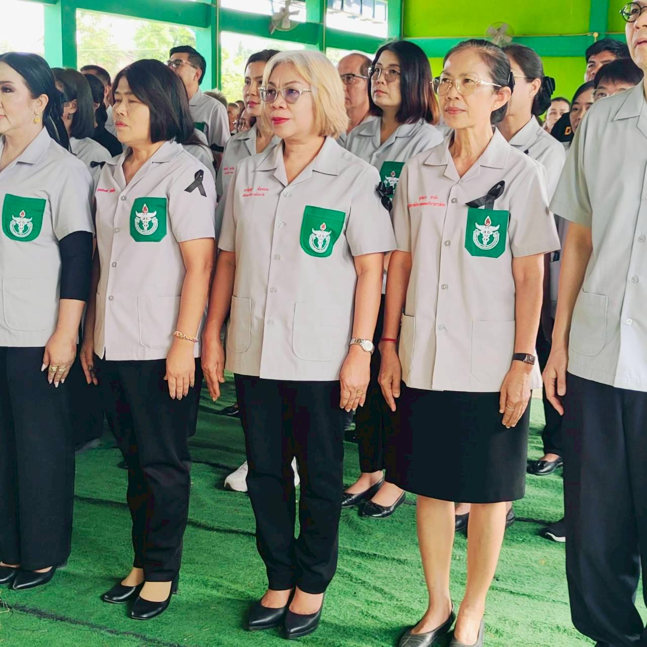 นายธนภัทร ณ ระนอง นำหัวหน้าส่วนราชการ ข้าราชการ ผู้นำชุมชน และประชาชน ยืนสงบนิ่งเพื่อแสดงความไว้อาลัยสมเด็จพระนางเจ้า