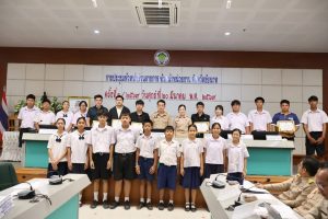 ก่อนเข้าสู่ระเบียบวาระการประชุม ดร.พัฒนาพร ไทยพิบูลย์ ศึกษาธิการจังหวัดชัยนาท นำนักเรียนที่ได้รับรางวัลจากการประกวดวงดนตรีสตริงนักเรียน จังหวัดชัยนาท (Music Contest 2026) ในงานมหกรรมหุ่นฟางนกและของดีศรีท้องถิ่นจังหวัดชัยนาท ครั้งที่ 41 เข้ารับเกียรติบัตรกับผู้ว่าราชการจังหวัดชัยนาท ดังนี้