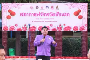 ในการนี้ สำนักงานศึกษาธิการจังหวัดชัยนาท พร้อมด้วยหน่วยงานสังกัดกระทรวงศึกษาธิการในจังหวัดชัยนาทจำนวน 11 หน่วยงาน ได้รับมอบธงเพื่อเป็นเจ้าภาพจัดกิจกรรมสภากาแฟจังหวัดชัยนาท ประจำเดือน มีนาคม 2567 ต่อไป
