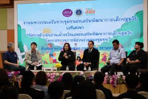วันพฤหัสบดีที่ 20 พฤศจิกายน 2568 เวลา 09.00 – 12.00 น. ณ ห้องประชุมชัยพฤกษ์ 111 รีสอร์ทแอนด์สปา ตำบลแพรกศรีราชา อำเภอสรรคบุรี จังหวัดชัยนาท ดร.พัฒนาพร ไทยพิบูลย์ ศึกษาธิการจังหวัดชัยนาท พร้อมด้วยบุคลากรกลุ่มนิเทศ ติดตาม และประเมินผล สำนักงานศึกษาธิการจังหวัดชัยนาท ได้เข้าร่วม งานมหกรรมเครือข่ายชุมชนใส่ใจดูแลเด็กจังหวัดชัยนาท ซึ่งจัดโดยมูลนิธิสร้างเสริมความรู้ด้านสุขภาพ (สคส.) งานมหกรรมฯ ในครั้งนี้ ได้รับเกียรติจาก นางจิตร์ธนา ยิ่งทวีลาภา นายกองค์การบริหารส่วนจังหวัดชัยนาท เป็นประธานในพิธีเปิดงาน ซึ่งกิจกรรมภายในงานมหกรรมฯ ประกอบด้วยกิจกรรมที่หลากหลายและน่าสนใจ ดังนี้ มีการแสดง ลิเกฮูลู เพื่อสืบสานศิลปวัฒนธรรมพื้นบ้าน พร้อมบูรณาการการส่งเสริมพัฒนาการเด็กปฐมวัย โดยคณะอาสาสมัครสาธารณสุขตำบลดอนฉิมพลี อำเภอบางน้ำเปรี้ยว จังหวัดฉะเชิงเทรา นิทรรศการและการจัดแสดงโครงการ: มีการจัดแสดงนิทรรศการโครงการพัฒนาศักยภาพอาสาสมัครสาธารณสุขเพื่อสุขภาวะเด็กปฐมวัยใน 5 จังหวัดนำร่อง ซึ่งประกอบด้วยบูธต่าง ๆ ดังนี้ บูธนิทรรศการมูลนิธิ สคส. (ทีมส่วนกลาง) บูธนิทรรศการจังหวัดฉะเชิงเทรา บูธนิทรรศการจังหวัดชัยนาท บูธนิทรรศการจังหวัดสุพรรณบุรี บูธนิทรรศการศูนย์การศึกษาพิเศษ ประจำจังหวัดชัยนาท บูธนิทรรศการคลินิกพัฒนาการเด็ก Let’s Grow Clinic และ มีการจัดเวทีเสวนาในหัวข้อ “ทิศทางดำเนินงานเฝ้าระวังและส่งเสริมพัฒนาการเด็กปฐมวัยโดยกระบวนการมีส่วนร่วมของชุมชน” โดยมีผู้ทรงคุณวุฒิและผู้ปฏิบัติงานที่เกี่ยวข้องเข้าร่วมเสวนา ดังรายนามต่อไปนี้ นายแพทย์ธีรชัย บุญยะลีพรรณ (รองผู้อำนวยการสำนักส่งเสริมสุขภาพ กรมอนามัย กระทรวงสาธารณสุข) นายอดิศักดิ์ วรวิชวลิตวัชระ (ผู้อำนวยการโรงพยาบาลส่งเสริมสุขภาพตำบลห้วยงู อำเภอหันคา จังหวัดชัยนาท) นางนภาพร ทองสุวรรณ (พยาบาลวิชาชีพชำนาญการ สำนักงานสาธารณสุข อำเภอเดิมบางนางบวช จังหวัดสุพรรณบุรี) นางบุญสร้าง ทองทิม (ประธานอาสาสมัครสาธารณสุขตำบลหนองน้อย อำเภอวัดสิงห์ จังหวัดชัยนาท) นายณัฐ์ธเนศ มหาศักดิ์ศิริ (นายกองค์การบริหารส่วนตำบลดอนฉิมพลี อำเภอบางน้ำเปรี้ยว จังหวัดฉะเชิงเทรา) ผู้ดำเนินรายการโดย ผู้ช่วยศาสตราจารย์ ดร.กนกวรรณ ธราวรรณ (ประธานมูลนิธิสร้างเสริมองค์ความรู้ด้านสุขภาพ (สคส.)