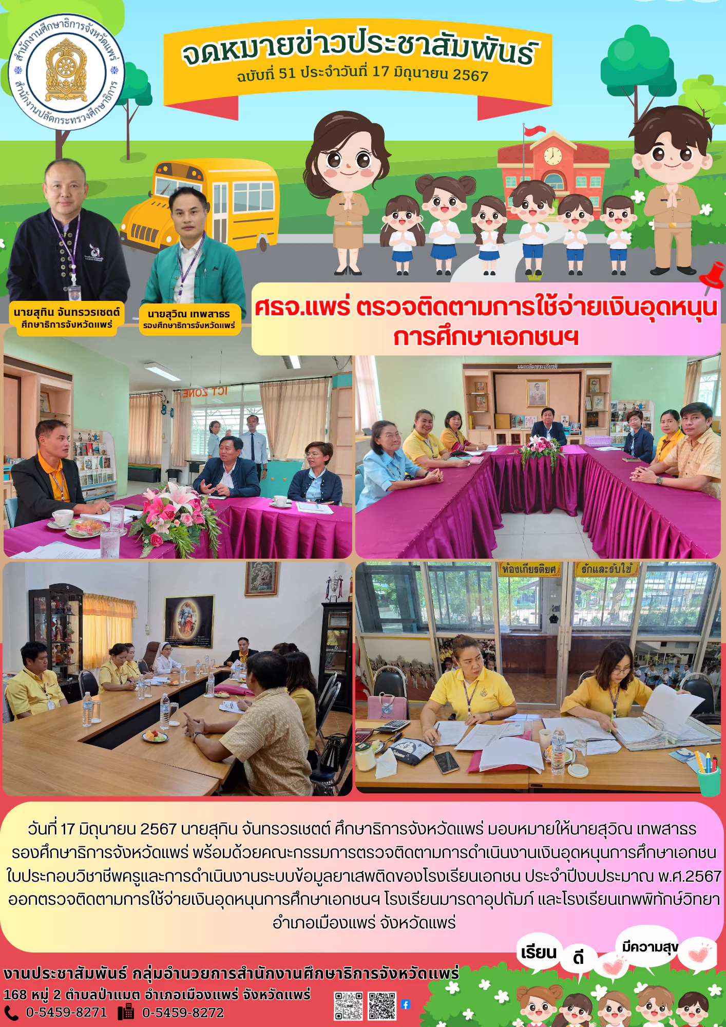 พร้อมด้วยคณะศึกษานิเทศก์ ลงพื้นที่ร่วมกับสำนักงานเขตพื้นที่การศึกษาฯ เพื่อตรวจเยี่ยมการดำเนินงานตามโครงการอาหารกลางวัน ซึ่งจากการสอบถาม และสัมภาษณ์
