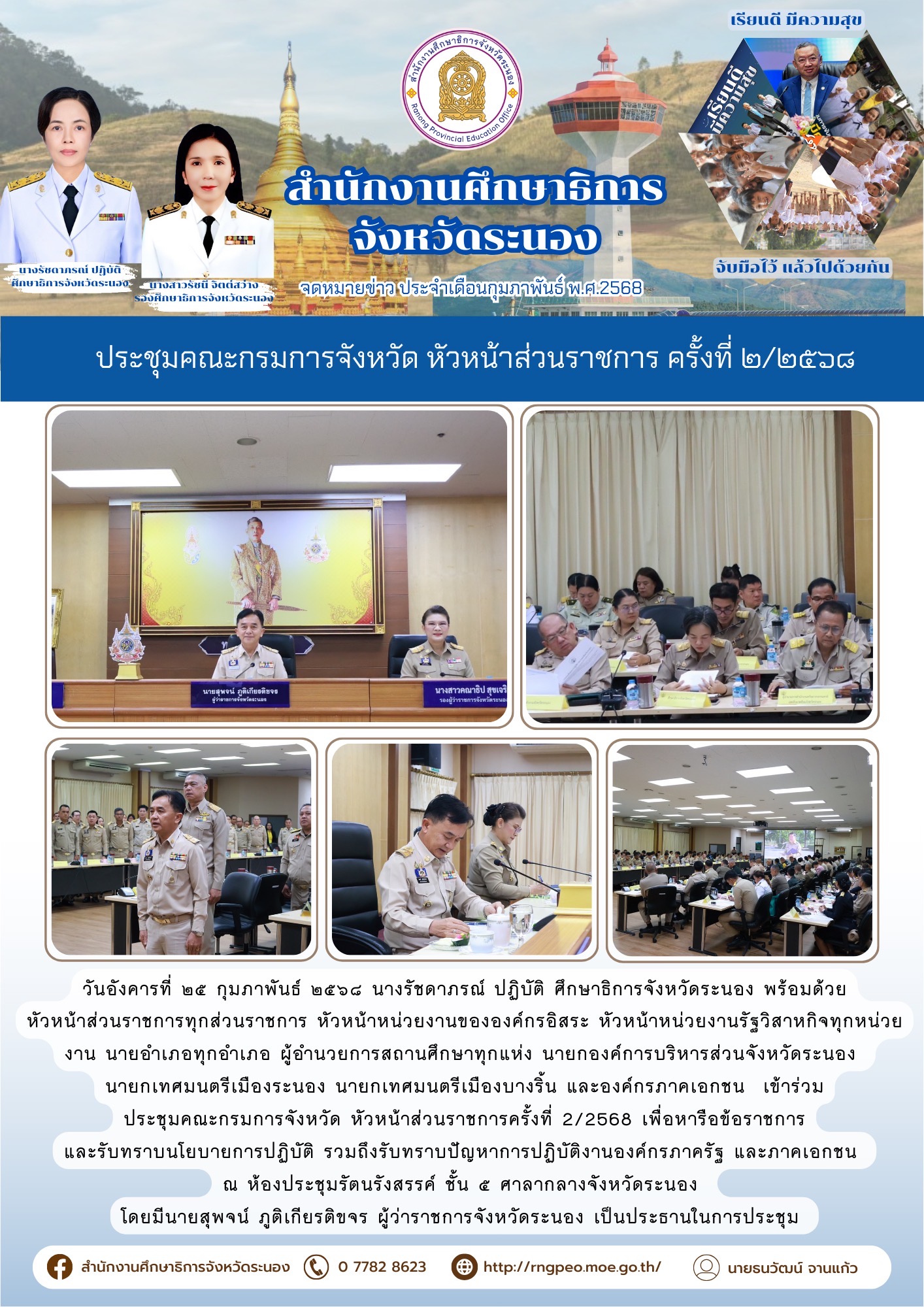 วันที่ 26 เมษายน 2561 เวลา 09.00 น. สำนักงานศึกษาธิการจังหวัดน่านรับรายงานตัวครูผู้ช่วย ณ ห้องประชุมสิริสาธร สำนักงานศึกษาธิการจังหวัดน่าน อำเภอเมืองน่าน จังหวัดน่าน โดยมี นายชูเกียรติ ด่านธนะทรัพย์ ศึกษาธิการจังหวัดน่าน นายอดุล เทพกอม รองศึกษาธิการจังหวัดน่าน พบปะ ปฐมนิเทศ แสดงความยินดี