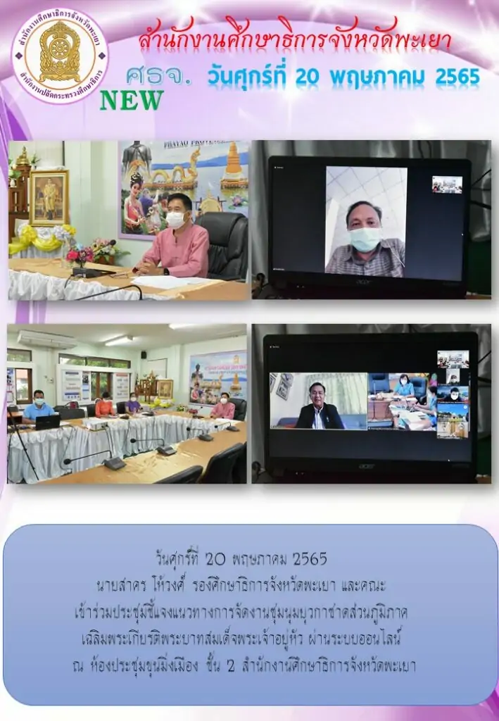 ศธจ.พะเยา เข้าร่วมประชุมชี้แจงแนวทางการจัดงานชุมนุมยุวกาชาดส่วนภูมิภาค เฉลิมพระเกียรติพระบาทสมเด็จพระเจ้าอยู่หัว ผ่านระบบออนไลน์
