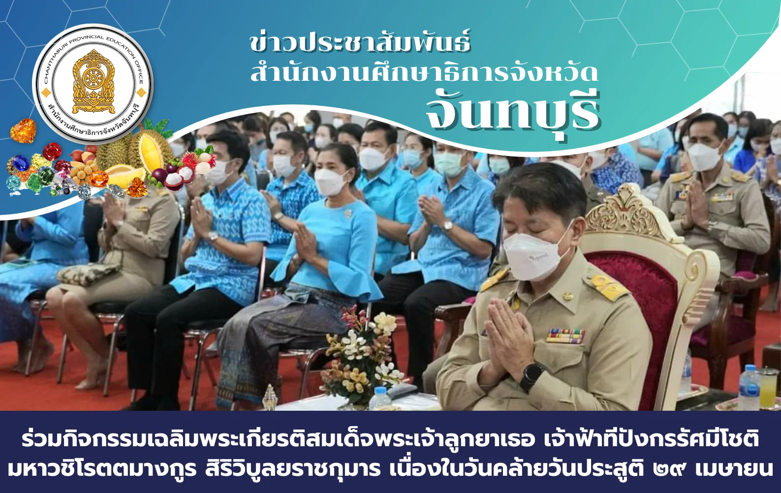 ทั้งนี้ ดร.พนิต ใหม่ประสิทธิกุล รองศึกษาธิการจังหวัด รักษาการในตำแหน่งศึกษาธิการจังหวัดพะเยา เป็นตัวแทนหน่วยงานกระทรวงศึกษาธิการส่งต่อถ้วยกาแฟ