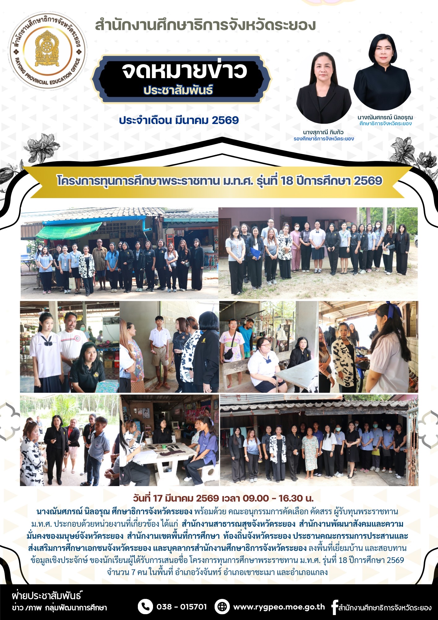 19 มี.ค. 69 (ศธจ.ชัยนาท) ประชุมการลงพื้นที่ตรวจราชการและติดตามประเมินผลตามนโยบายการศึกษาของกระทรวงศึกษาธิการ ประจำปีงบประมาณ พ.ศ. 2569 กรณีปกติ