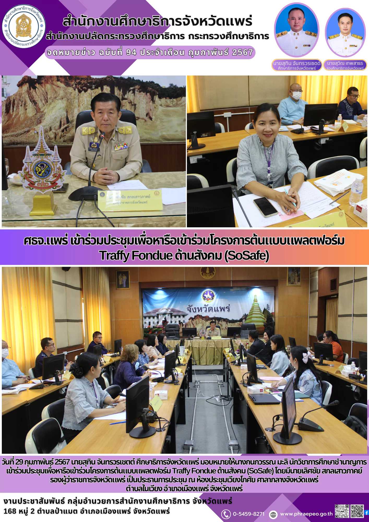 05 มี.ค. 67 ศธจ.แพร่ เข้าร่วมประชุมเพื่อหารือเข้าร่วมโครงการต้นแบบแพลตฟอร์ม Traffy Fondue ด้านสังคม (SoSafe)