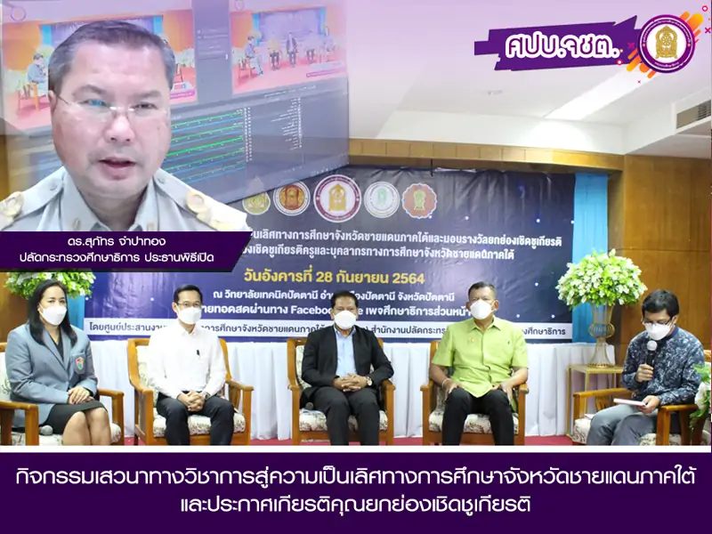 29 ก.ย. 64 ศปบ.จชต.กิจกรรมเสวนาทางวิชาการสู่ความเป็นเลิศทางการศึกษาจังหวัดชายแดนภาคใต้ และประกาศเกียรติคุณยกย่องเชิดชูเกียรติ ครูและบุคลากรทางการศึกษาดีเด่น ประจำปี 2564 “คนดีศรีเสมา จชต.”