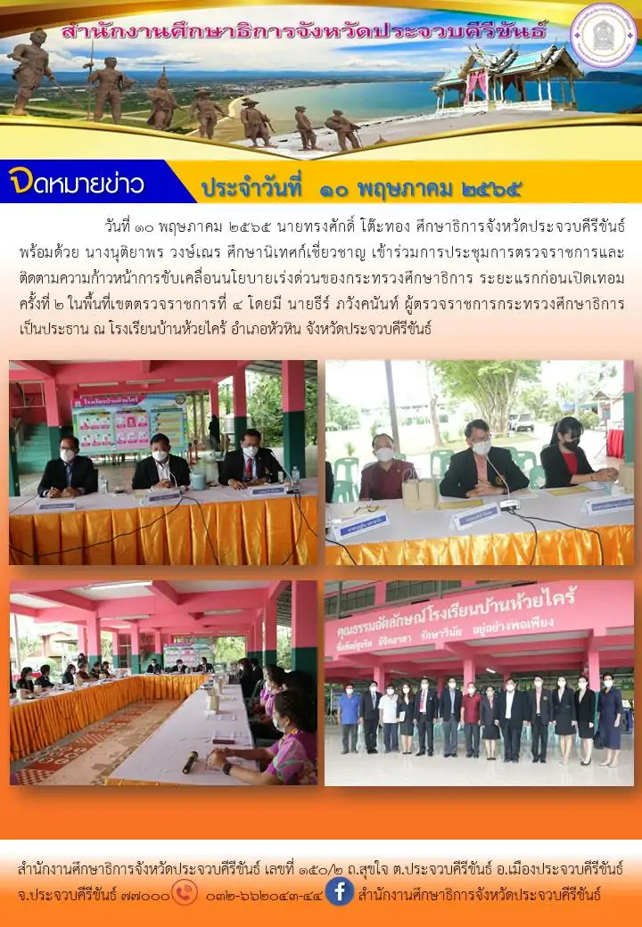 11 พ.ค. 65 การตรวจราชการและติดตามความก้าวหน้าการขับเคลื่อนนโยบายเร่งด่วนของกระทรวงศึกษาธิการ ระยะแรกก่อนเปิดเทอม ครั้งที่ 2 ในพื้นที่เขตตรวจราชการที่ 4