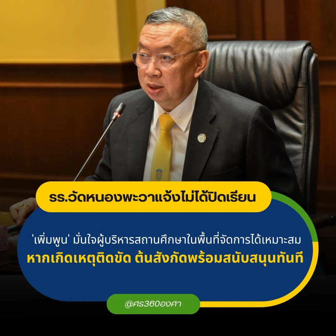 29 พ.ค. 67 โรงเรียนวัดหนองพะวาแจ้งไม่ได้ปิดเรียน ‘เพิ่มพูน’ มั่นใจผู้บริหารสถานศึกษาในพื้นที่จัดการได้เหมาะสม หากเกิดเหตุติดขัด ต้นสังกัดพร้อมสนับสนุนทันที