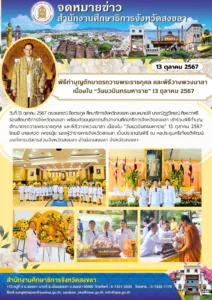 ศธจ.สงขลา เข้าร่วมพิธีทำบุญตักบาตรถวายพระราชกุศล และพิธีวางพวงมาลา เนื่องใน “วันนวมินทรมหาราช” 13 ตุลาคม 2567
