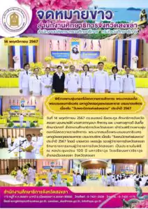 วันที่ 14 พฤศจิกายน 2567 ดร.ชนภรณ์ อือตระกูล ศึกษาธิการจังหวัดสงขลา มอบหมายให้ นางสาวกาญจนา ศึกหาญ และ นางสาวสุภาวดี จันเกื้อ ศึกษานิเทศก์ สำนักงานศึกษาธิการจังหวัดสงขลา เข้าร่วมพิธีวางพานพุ่มดอกไม้สดถวายราชสักการะ พระบาทสมเด็จพระบรมชนกาธิเบศร มหาภูมิพลอดุลยเดชมหาราช บรมนาถบพิตร เนื่องใน “วันพระบิดาแห่งฝนหลวง” ประจำปี 2567 โดยมี นายเศวต เพชรนุ้ย รองผู้ว่าราชการจังหวัดสงขลา เป็นประธานในพิธี ณ หอประชุมเปรม 100 ปี มหาวชิราวุธ โรงเรียนมหาวชิราวุธ อำเภอเมืองสงขลา จังหวัดสงขลา