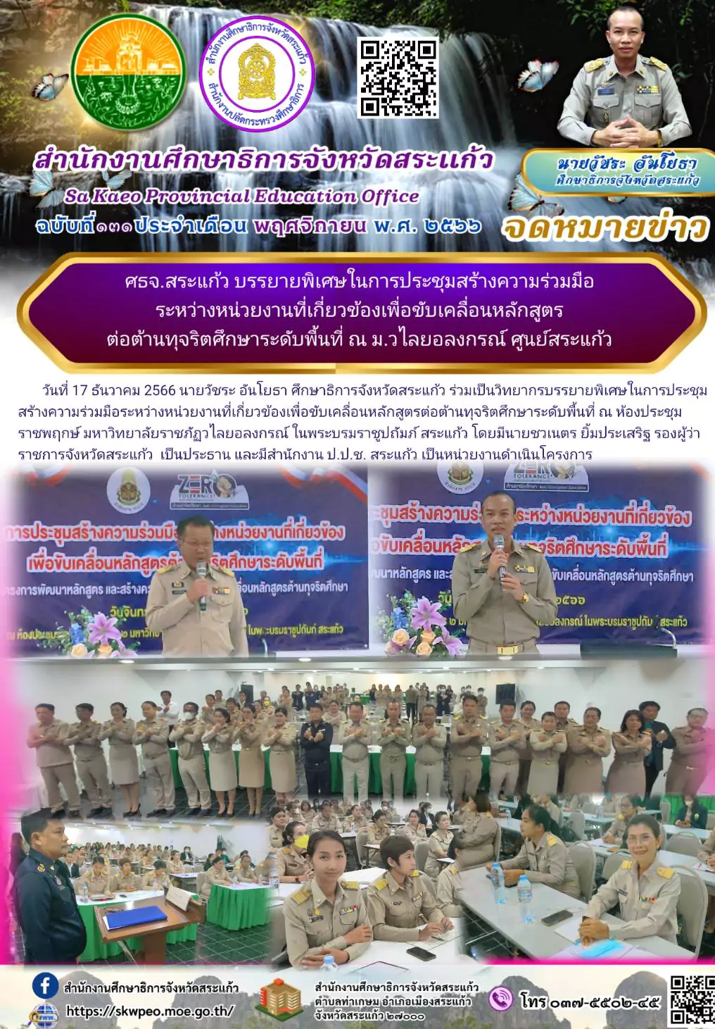 วันที่ 15 พฤศจิกายน 2560 เวลา 10.30 น. และ 14.00 น. สำนักงานศึกษาธิการจังหวัดสระบุรี โดยนายรังสรรค์ อินทพันธ์ รองศึกษาธิการจังหวัดสระบุรี และบุคลากรในสังกัด ให้การต้อนรับข้าราชการที่โอนย้ายมา จำนวน 3 ท่าน ได้แก่ 1.นางบังอร ปานแย้ม นักวิเคราะห์นโยบายและแผนชำนาญการพิเศษ กลุ่มนโยบายและแผน (โอนมาจาก สพป.สระบุรี เขต 2) 2.นางผกาทิพทย์ ภูอุดม ศึกษานิเทศก์ชำนาญการพิเศษ และ 3.นางกัญณภัทร หุ่นสุวรรณ ศึกษานิเทศก์ชำนาญการพิเศษ กลุ่มนิเทศ ติดตาม และประเมินผล (โอนมาจาก สพป.ลพบุรี เขต 2) นำโดยว่าที่ร้อยตรีศุภกฤต ศรีมงคล รองผอ.สพป.สระบุรี เขต 2 พร้อมคณะบุคลากร สพป.สระบุรี เขต 2 และคณะบุคลากร สพป.ลพบุรี เขต 2 โดยบรรยากาศในการต้อนรับเป็นไปด้วยความอบอุ่น