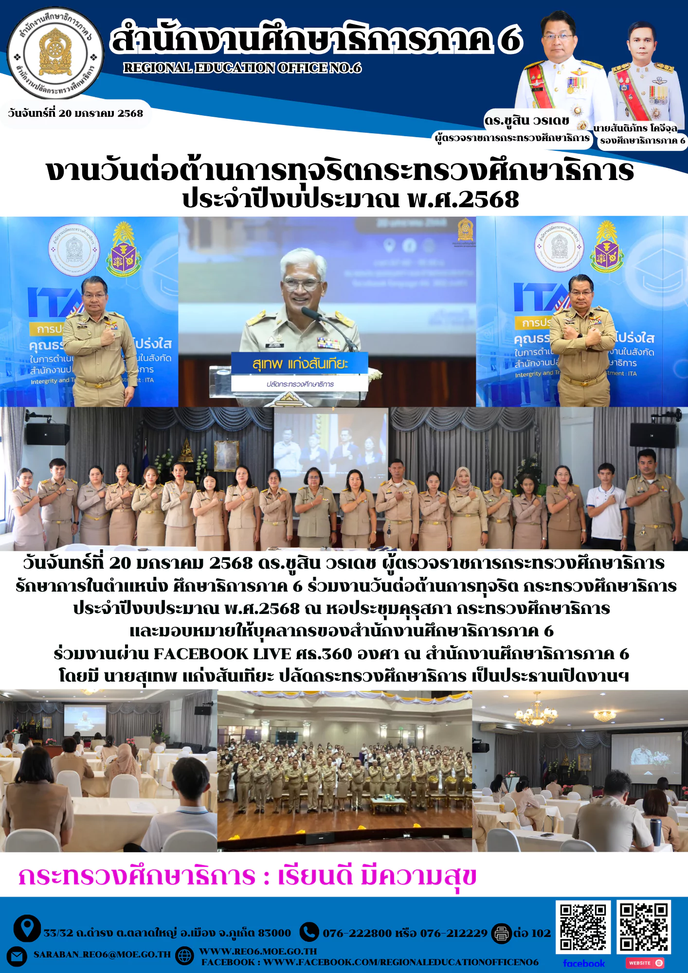 วันที่ 28 กรกฎาคม 2562 ดร.วีระพงศ์ เดชบุญ ศึกษาธิการจังหวัดสระบุรี และคณะ ร่วมพิธีทำบุญตักบาตรเพื่อถวายเป็นพระราชกุศล และลงนามถวายพระพรชัยมงคลเนื่องในวันเฉลิมพระชนมพรรษาพระบาทสมเด็จพระเจ้าอยู่หัว ประจำปีพุทธศักราช 2562 โดยมีนายแมนรัตน์ รัตนสุคนธ์ผู้ว่าราชการจังหวัดสระบุรี เป็นประธาน ณ ศูนย์ราชการจังหวัดสระบุรี