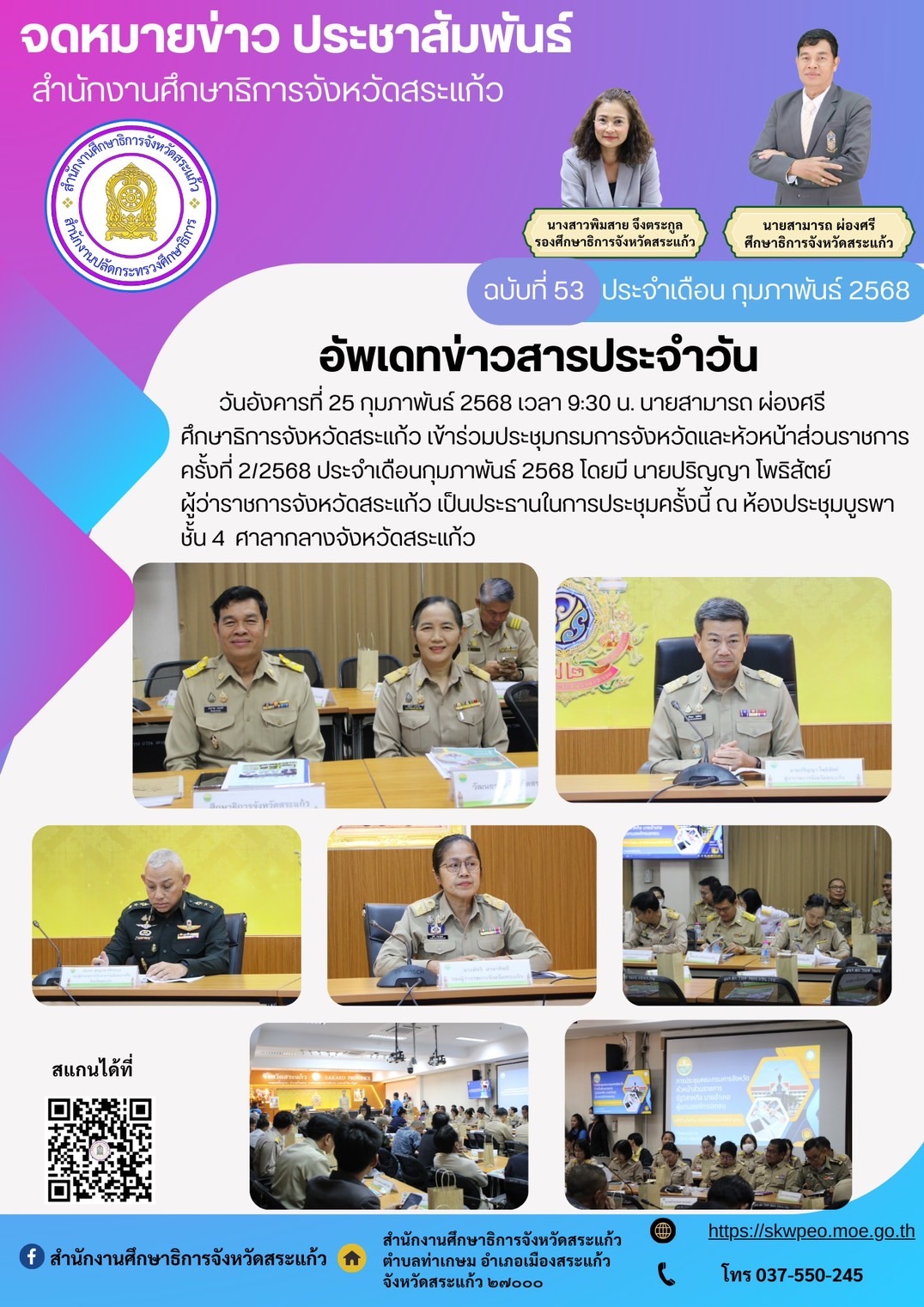 วันที่ ๒๖ มิถุนายน ๒๕๖๑ นายไสว สารีบท ศึกษาธิการจังหวัดสระแก้ว พร้อมด้วยข้าราชการในสังกัดเข้าร่วมต้อนรับคณะอนุกรรมการประกวด ผลการดำเนินงานระดับประเทศ ในการลงพื้นที่ติดตามผลการดำเนินงานจังหวัด TO BE NUMBER ONE สระแก้ว ร่วมกับคณะผู้ว่าราชการจังหวัดสระแก้ว ในฐานะประธานชมรม To Be Number One สระแก้ว ณ วิทยาลัยชุมชนสระแก้ว โดยมีผู้แทนส่วนราชการที่มี่ส่วนเกี่ยวข้องในชมรมฯ เข้าร่วมงานในครั้งนี้ด้วย นายพรพจน์ เพ็ญภาส ผู้ว่าราชการจังหวัดสระแก้ว ได้กล่าวรายงานผลการดำเนินการของชมรมฯ ต่อคณะอนุกรรมการฯ ซึ่งภายในงาน มีการจัดการมีการจัดนิทรรศการซุ้มกิจกรรมผลการดำเนินงานชมรม To Be Number One ของจังหวัดสระแก้วและมีการประกวด Cover Dance 2018 คุกกี้เสี่ยงทาย จากสมาชิกชมรมทูบีนัมเบอร์วันจังหวัดสระแก้ว อีกด้วย