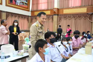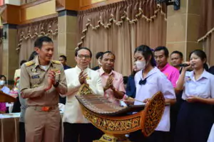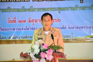 วันอังคารที่ ๒๗ มิถุนายน ๒๕๖๖ นายธีรยุทธ์ จันทร์ดิษฐ์วงษ์ รองผู้ว่าราชการจังหวัดสุพรรณบุรี เป็นประธานเปิดการประชุมสัมมนาเรียนรู้ประวัติศาสตร์ชาติไทย “สุพรรณบุรีแผ่นดินนี้มีตำนาน พระบรมราชานุสรณ์ดอนเจดีย์” ณ หอประชุมโรงเรียนบรรหารแจ่มใสวิทยา ๑ อำเภอดอนเจดีย์จังหวัดสุพรรณบุรี โดยมี นายกอบภณ แสงสมบัติ ศึกษาธิการจังหวัดสุพรรรณบุรี เป็นผู้กล่าวรายงาน การประชุมดังกล่าวมีวัตถุประสงค์เพื่อส่งเสริมให้ผู้เรียนได้ศึกษาเรียนรู้และมีทัศนคติที่ดีต่อสถาบันพระมหากษัตริย์และบ้านเมือง รวมทั้งพระราชกรณียกิจของบูรพกษัตริย์ไทย และพระมหากรุณาธิคุณที่มีต่อประชาชนคนไทย ส่วเสริมให้ผู้เรียนมีความรู้ และสามารถน้อมนำพระบรมราโชบายด้านการศึกษาไปประยุกต์ใช้ในชีวิตประจำวัน ผู้เข้าร่วมประชุมฯ ประกอบด้วย ครู และ นักเรียน ในสังกัด สพฐ. สำนักงานอาชีวศึกษา สำนักงานส่งเสริมการเรียนรู้จังหวัดสุพรรณบุรี และ สช. รวมทั้งสิ้น ๒๕๙ คน