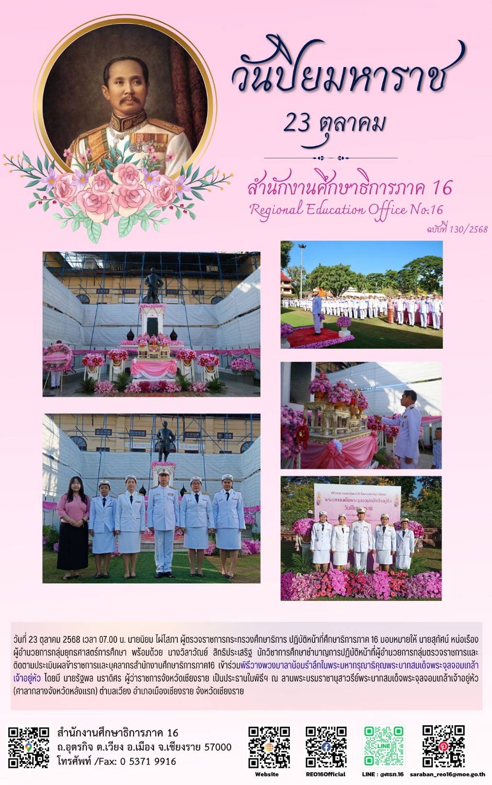 วันจันทร์ที่ 27 ตุลาคม พ.ศ. 2568 เวลา 05.30 น. นายสุวิณ เทพสาธร ศึกษาธิการจังหวัดสุโขทัย พร้อมด้วยข้าราชการและบุคลากร สำนักงานศึกษาธิการจังหวัดสุโขทัย เข้าร่วมพิธีรับรุ่งอรุณแห่งความสุข กิจกรรม“ใส่บาตรสะพานบุญ รับอรุณสุโขทัย” ณ สะพานบุญและเจดีย์กลางน้ำ วัดตระพังทอง ตำบลเมืองเก่า อำเภอเมืองสุโขทัย โดยนายนพฤทธิ์ ศิริโกศล ผู้ว่าราชการจังหวัดสุโขทัยเป็นประธานในพิธีดังกล่าว พร้อมด้วยคณะหัวหน้าส่วนราชการ หน่วยงานราชการจังหวัด เหล่ากาชาด เครือข่ายวัฒนธรรมและการท่องเที่ยวจังหวัดสุโขทัย พร้อมพุทธศาสนิกชนจำนวนมาก ร่วมใส่บาตรข้าวสาร อาหารแห้ง แด่พระภิกษุสงฆ์ ซึ่งพิธีนี้เป็นกิจกรรม “รับอรุณแห่งความสุข” ทุกเช้าในช่วงเทศกาลลอยกระทงของจังหวัดสุโขทัย ซึ่งตั้งใจให้คนสุโขทัยและนักท่องเที่ยวเริ่มต้นวันด้วยบุญ สร้างศรัทธาในพระพุทธศาสนา เชื่อมโยงกับวิถีชุมชนเมืองเก่า และกระตุ้นเศรษฐกิจฐานรากของคนในพื้นที่อย่างเป็นรูปธรรม (อุดหนุนชุมชน ทำนุบำรุงวัด คงคุณค่ามรดกวัฒนธรรมสุโขทัย) …