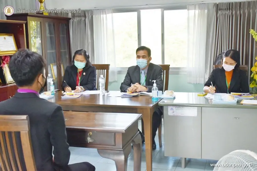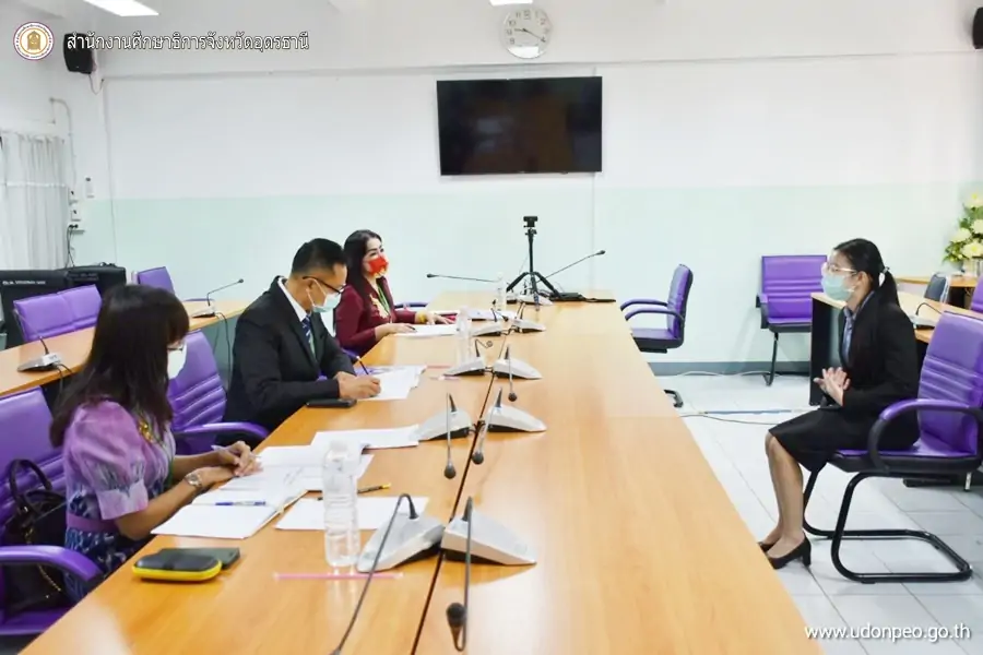 วันที่ 25 ก.พ.65 นายสุวัฒน์ชัย แสนราช ศึกษาธิการจังหวัดอุดรธานี มอบนโยบายแก่คณะกรรมการสอบสัมภาษณ์ การคัดเลือกนักศึกษาทุนโครงการผลิตครูเพื่อพัฒนาท้องถิ่น ปี พ.ศ.2564 รอบที่ 2 เพื่อบรรจุและแต่งตั้งเข้ารับราชการเป็นข้าราชการครูและบุคลากรทางการศึกษา ตำแหน่งครูผู้ช่วย สังกัด สพฐ. ประเมินความเหมาะสมกับตำแหน่งและวิชาชีพ ประเมินด้วยวิธีสัมภาษณ์ สังเกต ตรวจสอบเอกสาร โดยมีผู้เข้ารับการประเมินครั้งนี้จำนวน 33 คน