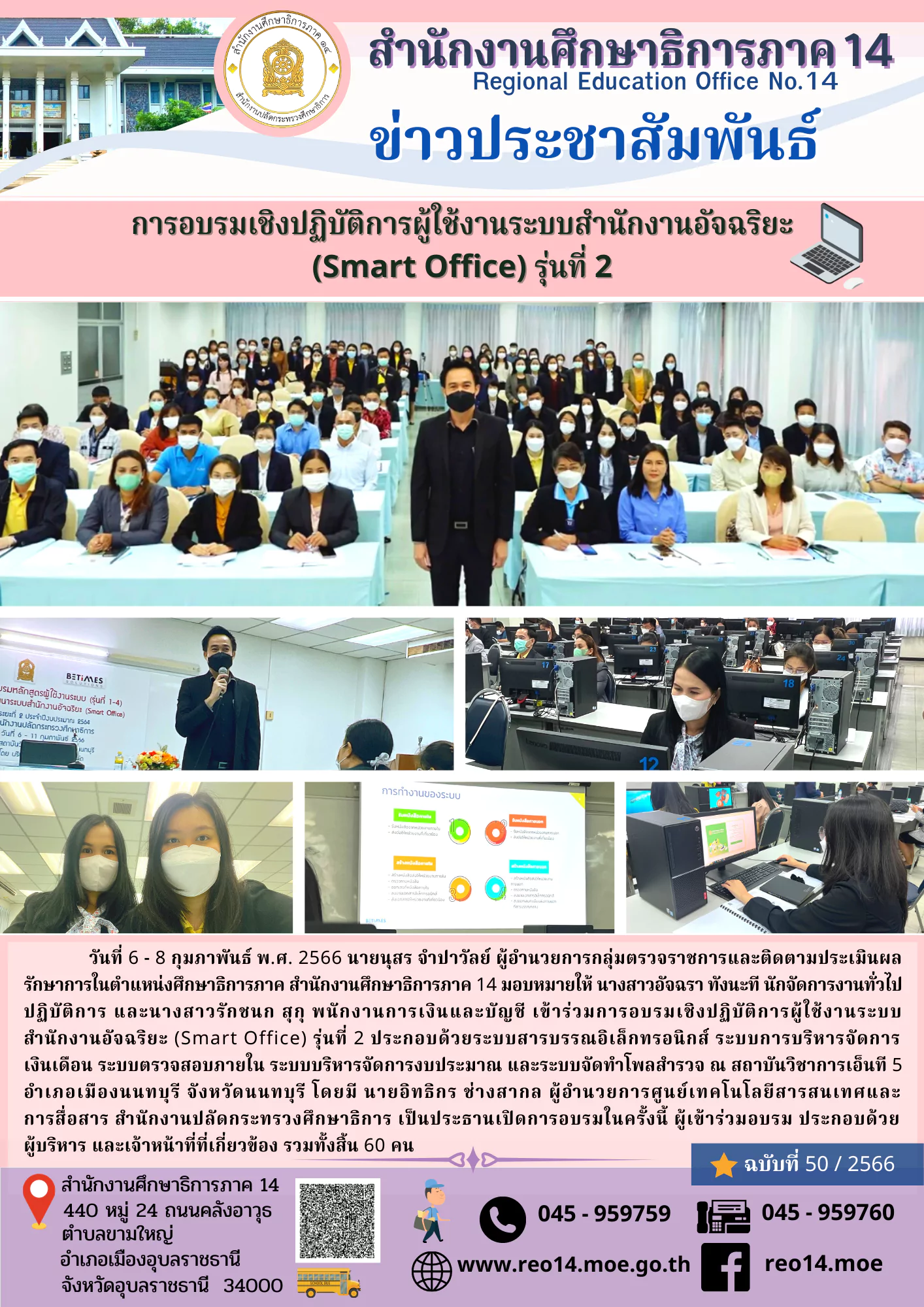 07 ก.พ. 66 ศธภ.14 เข้าร่วมการอบรมเชิงปฏิบัติการผู้ใช้งานระบบสำนักงานอัจฉริยะ (Smart Office) รุ่นที่ 2