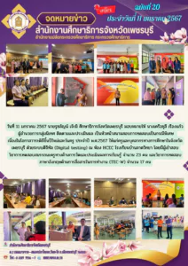 วันที่ 11 มกราคม 2567 นายรุซลัญน์ เจ๊ะมิ ศึกษาธิการจังหวัดเพชรบุรี มอบหมายให้ นางเครือชุลี เรืองแก้ว ผู้อำนวยการกลุ่มนิเทศ ติดตามและประเมินผล เป็นหัวหน้าสนามสอบการทดสอบเป็นกรณีพิเศษ เนื่องในโอกาสวาระดิถีขึ้นปีใหม่และวันครู ประจำปี พ.ศ.2567 ให้แก่ครูและบุคลากรทางการศึกษาในจังหวัดเพชรบุรี ด้วยระบบดิจิทัล (Digital testing) ณ ห้อง HCEC โรงเรียนบ้านลาดวิทยา โดยมีผู้เข้าสอบวิชาการทดสอบสมรรถนะครูทางด้านการวัดและประเมินผลการเรียนรู้ จำนวน 23 คน และวิชาการทดสอบภาษาอังกฤษด้านการสื่อสารในการทำงาน (TEC-W) จำนวน 17 คน
