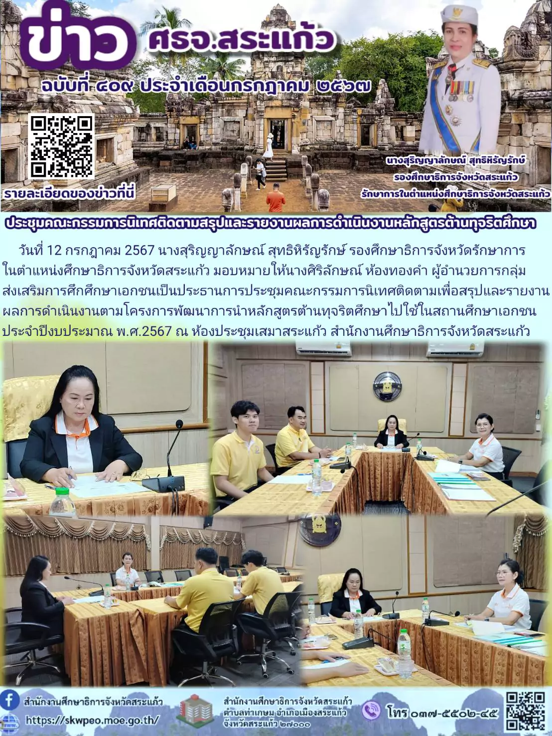 ดร.กนก  ปิ่นตบแต่ง ศึกษาธิการจังหวัดเพชรบุรี อนุกรรมการและเลขานุการ จัดประชุมอนุกรรมการศึกษาธิการจังหวัดเพชรบุรี