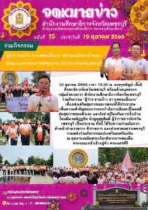 18 ตุลาคม 2566 เวลา 16.30 น. นายรุซลัญน์ เจ๊ะมิ ศึกษาธิการจังหวัดเพชรบุรี พร้อมด้วยบุคลากรกลุ่มอำนวยการ สำนักงานศึกษาธิการจังหวัดเพชรบุรี ร่วมกิจกรรม “ผู้ว่าฯ ชวนก้าว ชาวเพชรแข็งแรง” เพื่ออส่งเสริมสุขภาพและรณรงค์ให้ประชาชนเห็นความสำคัญของการออกกำลังกายอันจะเป็นผลดีต่อสุขภาพของตัวเอง และยังช่วยป้องกันการเจ็บป่วยโดยมีนายณัฏฐชัย นำพูลสุขสันติ์ ผู้ว่าราชการจังหวัดเพชรบุรี เป็นประธาน ทั้งนี้ ได้รับความร่วมมือจากหัวหน้าส่วนราชการ ข้าราชการ และประชาชนชาวเพชรบุรี รวมพลังร่วมกิจกรรมอย่างพร้อมเพรียงกัน ณ อุทยานเฉลิมพระเกียรติพระบาทสมเด็จพระจอมเกล้าเจ้าอยู่หัว พระนครคีรี