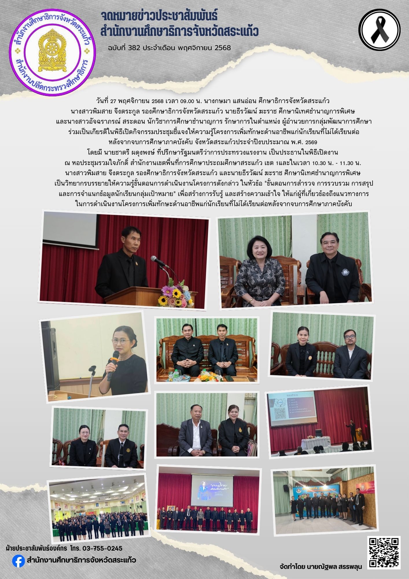 วันพฤหัสบดีที่ 27 พฤศจิกายน 2568 เวลา 13.30 น. นางสาวสุภาพันธุ์ ทองพยงค์ ศึกษาธิการจังหวัดเพชรบูรณ์ รักษาการแทนผู้อำนวยการสำนักงาน สกสค.จังหวัดเพชรบูรณ์ เป็นประธาน“ประชุมคณะกรรมการ สกสค.จังหวัดเพชรบูรณ์ ครั้งที่ 11/2568” โดยมี คณะกรรมการ สกสค.จังหวัดเพชรบูรณ์ เข้าร่วมประชุม ณ ห้องประชุม สนง.สกสค.จังหวัดเพชรบูรณ์