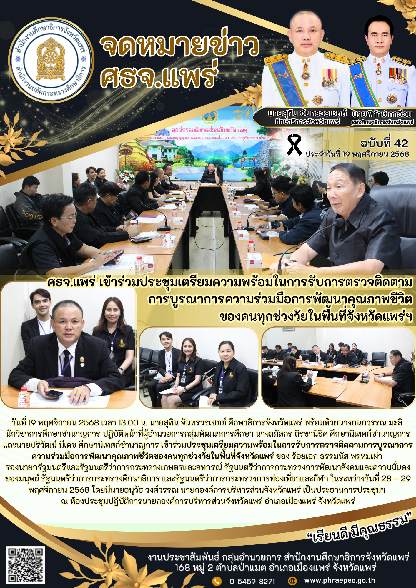 วันศุกร์ที่ 21 พฤศจิกายน 2568 เวลา 06.00 น. นางสาวสุภาพันธุ์ ทองพยงค์ ศึกษาธิการจังหวัดเพชรบูรณ์ ร่วม“ออกอากาศสัมภาษณ์สดในรายการ “ผู้ว่าฯ พบประชาชน” (ผ่านทาง FM 102.75 Mhz และสื่อออนไลน์ Facebook Live เพจ สวท.เพชรบูรณ์)” โดยในรายการได้ให้สัมภาษณ์ในประเด็นกิจกรรมการแสดงบนเวทีกลาง งานมะขามหวานนครบาล นครบาลเพชรบูรณ์ ประจำปี 2569 และการประกวดวงดนตรีสตริง“เวทีของเยาวชนคนดนตรีศรีนครบาลเพชรบูรณ์” ประจำปี 2569 โดยมี นางสาววริยาภรณ์ พงษ์วราพัฒน์ ท้องถิ่นจังหวัดเพชรบูรณ์ และ คุณพรสวรรค์ อุทัยวงศ์ เป็นผู้ดำเนินรายการ เข้าร่วมรายการ “ผู้ว่าฯ พบประชาชน” ณ สถานีวิทยุกระจายเสียงแห่งประเทศไทย จังหวัดเพชรบูรณ์