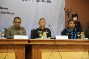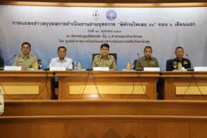 วันพฤหัสบดีที่ ๒๐ เมษายน ๒๕๖๖ เวลา ๐๙.๓๐ น. ณ ห้องประชุมศรีสองรัก ชั้น ๕ ศาลากลางจังหวัดเลย นายเฉลิมชัย แสนมหาชัย ศึกษาธิการจังหวัดเลย ร่วมการแถลงข่าวสรุปผลการดำเนินงานตามยุทธการ “พิทักษ์ไทเลย ๖๖” (รอบ ๖ เดือนแรก) ด้วยการนำเสนอผลงานด้านการป้องกันและแก้ไขปัญหา ยาเสพติดในสถานศึกษา ประจำปี ๒๕๖๖ และ ทิศทางการดำเนินงานในปีงบประมาณ ๒๕๖๖ ร่วมกับผู้แทนผู้บังคับบัญชากองกำลังสุรศักดิ์มนตรี ผู้บัญชามนฑลทหารบกที่ ๒๘ ผู้บังคับการตำรวจภูธรจังหวัดเลย นายแพทย์สาธารณสุขจังหวัดเลย และผู้อำนวยการสำนักงานป้องกันและปราบปรามยาเสพติดภาค ๔ โดยมีผู้ว่าราชการจังหวัดเลย /ผู้อำนวยการศูนย์อำนวยการป้องกันและปราบปราม ยาเสพติดจังหวัดเลยเป็นประธานการแถลงข่าวและ ร่วมตอบข้อซักถามของสื่อมวลชน