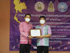 วันอังคารที่ ๒๑ กุมภาพันธ์ ๒๕๖๖ นายเฉลิมชัย แสนมหาชัย ศึกษาธิการจังหวัดเลย รับมอบเกียรติบัตร จากนายบุญเติม เรณุมาศ รองผู้ว่าราชการจังหวัดเลย โดยสำนักงานศึกษาธิการจังหวัดเลย ได้รับการประกาศยกย่องให้เป็นองค์กร “ระดับ คุณธรรมต้นแบบ” ตามโครงการส่งเสริมชุมชน องค์กร อำเภอ และจังหวัดคุณธรรม ปีงบประมาณ พ.ศ.๒๕๖๕ ภายใต้แผนแม่บทส่งเสริมคุณธรรมแห่งชาติ ฉบับที่ ๑ (พ.ศ.๒๕๕๙ – ๒๕๖๕) ณ ห้องประชุมศรีสองรัก ชั้น ๕ ศาลากลางจังหวัดเลย