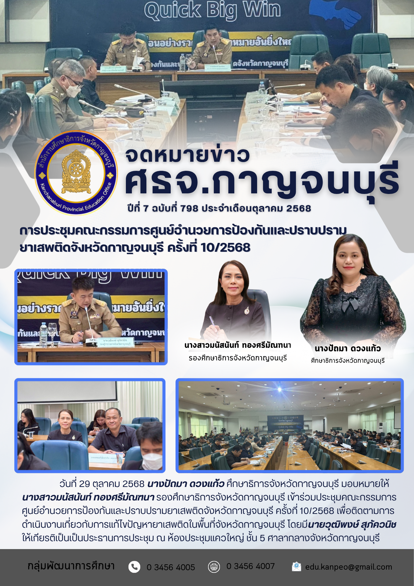 29 ต.ค. 68 การประชุมคณะกรรมการศูนย์อำนวยการป้องกันและปราบปราม ยาเสพติดจังหวัดกาญจนบุรี ครั้งที่ 10/2568