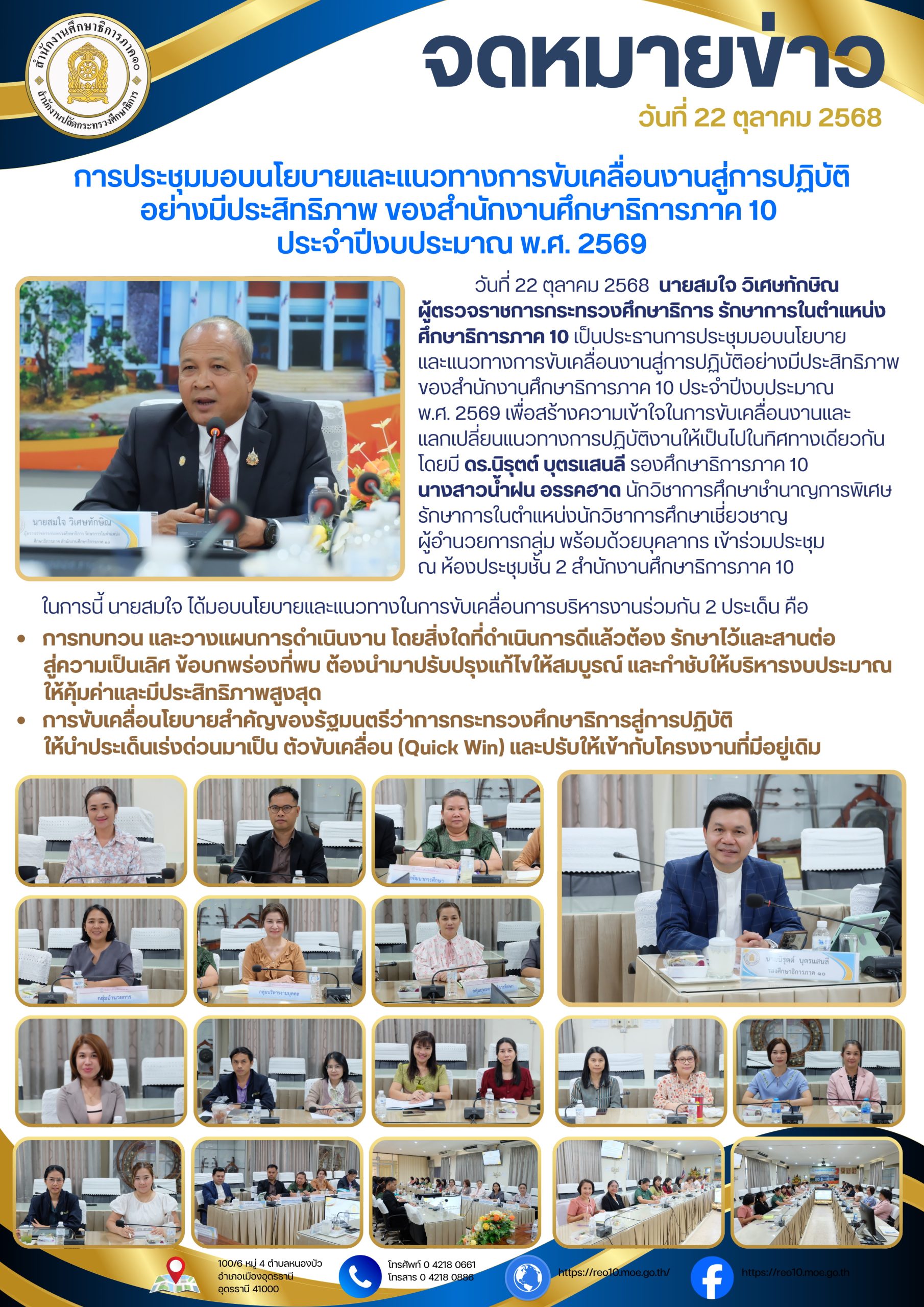 วันอังคารที่ 13 กุมภาพันธ์ 2561 เวลา 09.00 น. ดร.ดิศกุล เกษมสวัสดิ์ ผู้ตรวจราชการกระทรวงศึกษาธิการ พร้อมด้วยนางรักขณาตัณฑวุฑโฒรองศึกษาธิการภาค 1 รักษาการในตำแหน่งศึกษาธิการภาค 1 และคณะลงพื้นที่ตรวจราชการตามนโยบายรัฐมนตรีว่าการกระทรวงศึกษาธิการ รอบที่ 1 ประจำปีงบประมาณพ.ศ. 2561 ณ โรงเรียนคลองบ้านพร้าว จังหวัดปทุมธานี หน่วยรับตรวจรายงานผลการดำเนินงานตามนโยบายการตรวจราชการ พร้อมทั้งปัญหา/อุปสรรค และข้อเสนอแนะ ประกอบด้วย (1) ศึกษาธิการจังหวัดปทุมธานี (2) สพป. ปทุมธานี เขต1 –2 (3) สพม.เขต 4 (4) สำนักงานอาชีวศึกษาจังหวัดปทุมธานี (5) สำนักงาน กศน.จังหวัดปทุมธานี (6) ศูนย์การศึกษาพิเศษจังหวัดปทุมธานี