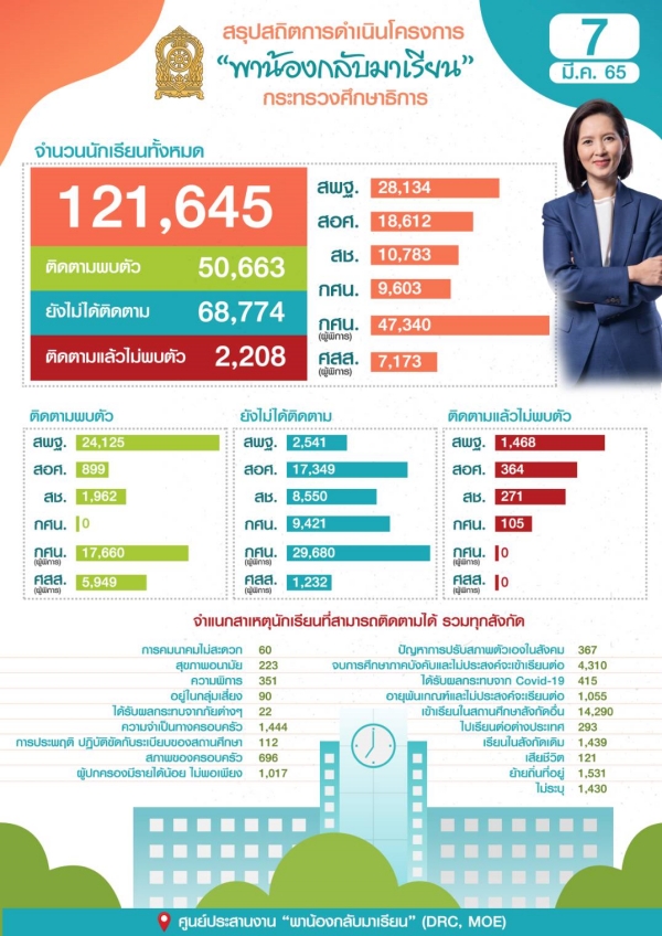 1) โครงการส่งเสริมโอกาส ความเสมอภาคและความเท่าเทียมทางการศึกษา “พาน้องกลับมาเรียน” ของสำนักงาน กศน. ตามนโยบายกระทรวงศึกษาธิการ ปี พ.ศ. 2565