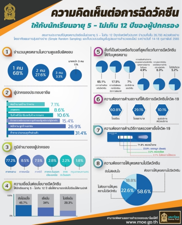 2) เสมาโพล : สรุปผลการสำรวจ “ความคิดเห็นต่อการฉีดวัคซีนให้กับนักเรียนอายุ 5 – ไม่เกิน 12 ปี ของผู้ปกครอง”