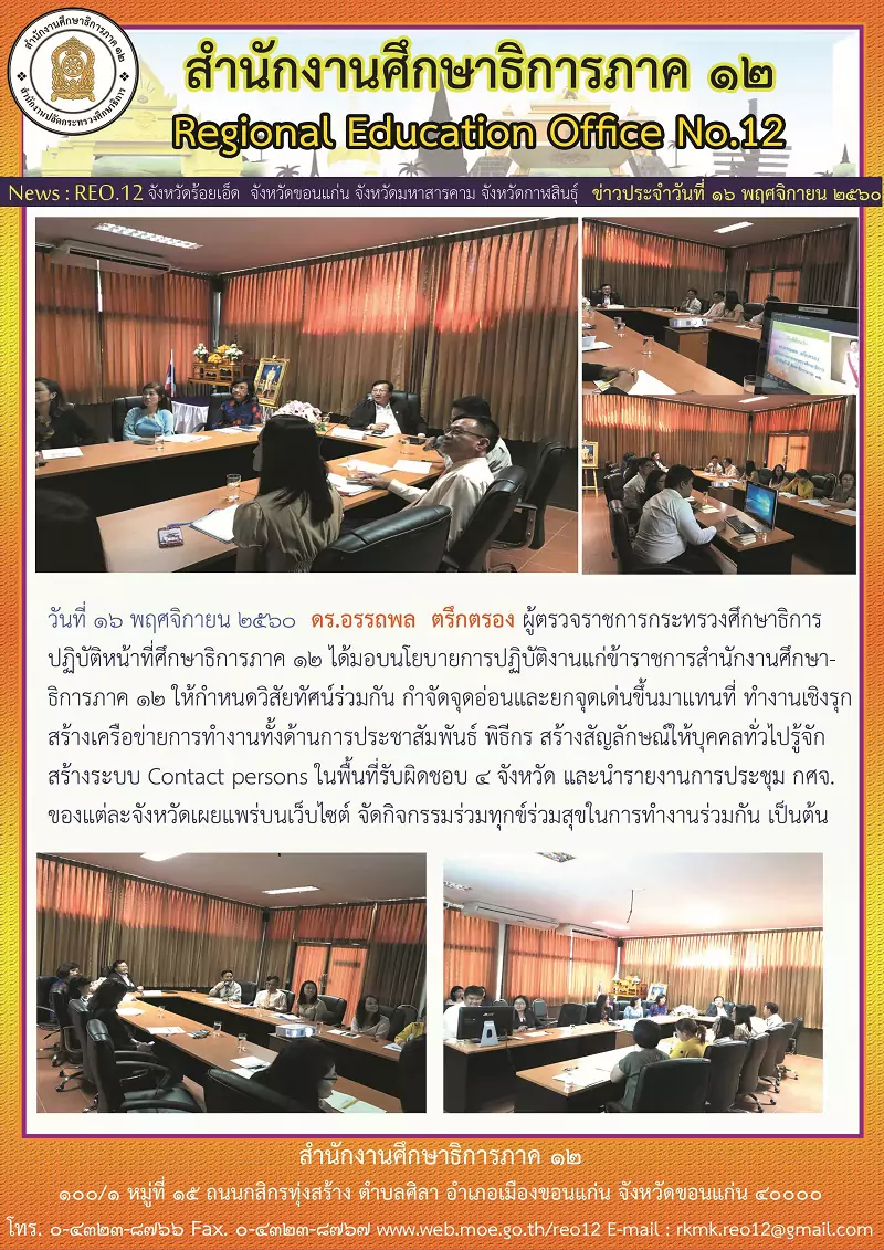 ศธภ.12 ดร.อรรถพล ตรึกตรอง ผู้ตรวจราชการกระทรวงศึกษาธิการ มอบโยบายการปฏิบัติงานให้แก่ข้าราชการ
