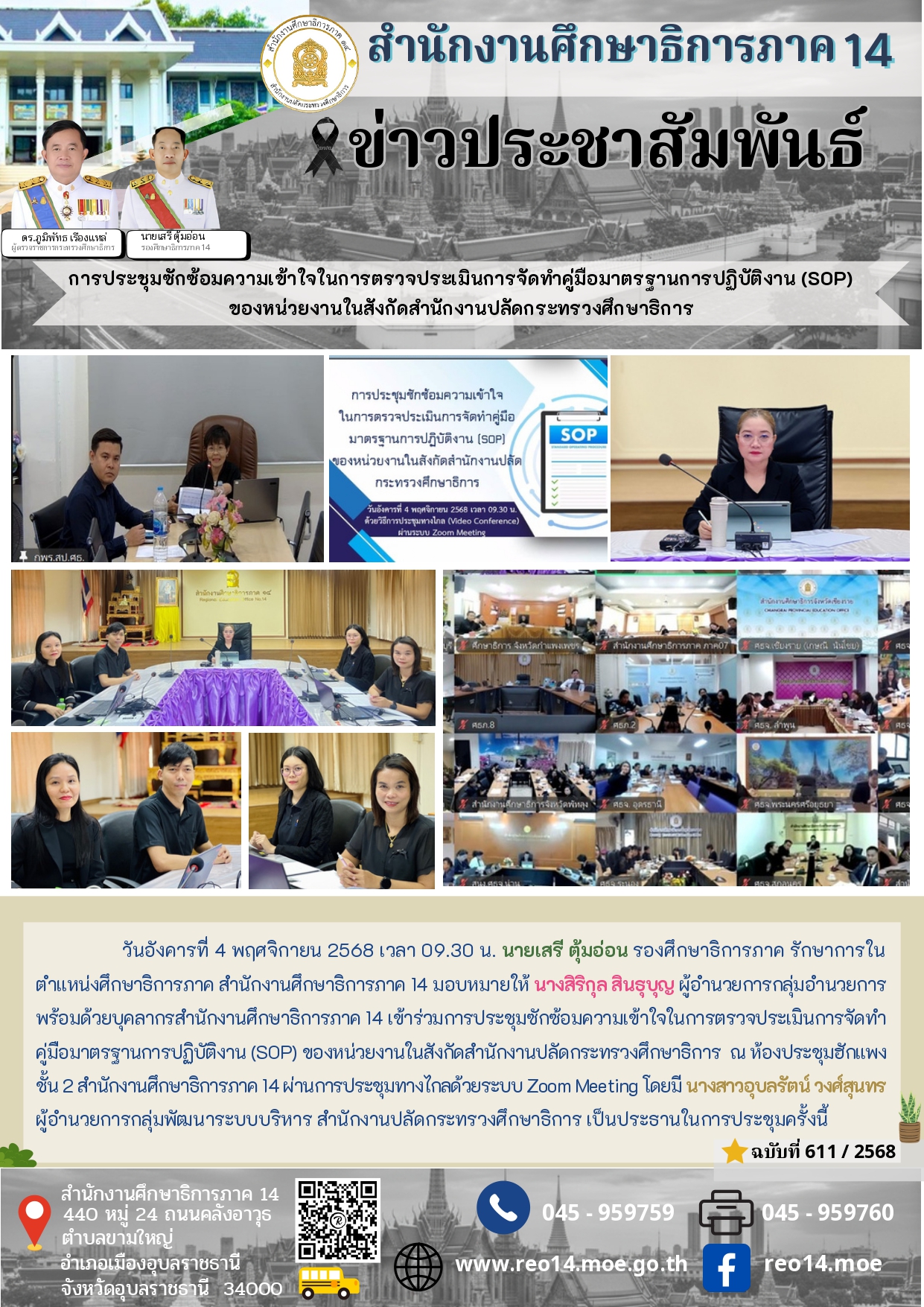 reo7 07082561วันอังคารที่ 7 สิงหาคม 2561 เวลา 09.00 น. นายชาญ ตันติธรรมถาวร ผู้ตรวจราชการกระทรวงศึกษาธิการ เขตตรวจราชการที่ 7 นายนิวรณ์ แสงวิสุทธ์ิ์ รองศึกษาธิการจังหวัดตรัง รักษาการในตำแหน่งศึกษาธิการจังหวัดตรัง และนางภภริญ ใจเขียว ผู้อำนวยการกลุุ่มตรวจราชการและติดตามประเมินผล ศธภ.7 พร้อมคณะฯ ตรวจเยี่ยมสถานศึกษา ณ โรงเรียนดรุโณทัย จังหวัดตรัง และมักรรมการสถานศึกษา ตัวแทนผู้ปกครองนักเรียน และผู้บริหารโรงเรียนจุ๋งฮัวโซะเซียว โรงเรียนวิเชียรมาตุ โรงเรียนย่านตาขาวรัฐชนูปถัมภ์ เข้าร่วมประชุม เพื่อรับฟังปัญหาอุปสรรค และข้อเสนอแนะด้วย