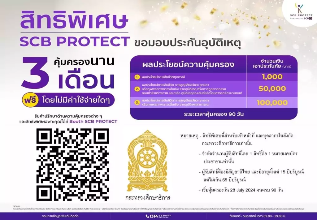 ขอบคุณผู้บริหาร SCB Protect ที่ให้การสนับสนุนเป็นอย่างดี เล็งเห็นความสำคัญของครูและบุคลากรทางการศึกษาทั่วประเทศ มอบประกันอุบัติเหตุและประกันชีวิตฟรี และไม่ใช่เฉพาะครูในสังกัดกระทรวงศึกษาธิการเท่านั้น แต่เราได้ร่วมพิจารณาแล้วว่าไม่ว่าจะอยู่ในสังกัดใดก็ควรได้สิทธิประโยชน์นี้อย่างทั่วถึง รวมไปถึงพนักงานเจ้าหน้าที่ส่งเสริมความประพฤตินักเรียนและนักศึกษา (พสน.) ก็สามารถเข้าถึงสิทธิพิเศษนี้ได้เช่นเดียวกัน ถือเป็นสิ่งดีที่กระตุ้นเตือนให้ตระหนักถึงการลดความเสี่ยงเรื่องการทำประกันชีวิต