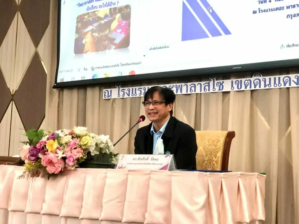 (4 กันยายน 2565) เวลา 08.30 น. ดร.พีรศักดิ์ รัตนะ เลขาธิการคณะกรรมการส่งเสริมการศึกษาเอกชน (เลขาธิการ กช.) เป็นประธานเปิดการอบรมเชิงปฏิบัติการการจัดการเรียนรู้ที่ส่งเสริมให้ผู้เรียนเกิดสมรรถนะทางด้านวิทยาศาสตร์ คณิตศาสตร์ และเทคโนโลยีสำหรับครูผู้สอนวิชาวิทยาศาสตร์ คณิตศาสตร์ และเทคโนโลยี ระดับประถมศึกษา ณ โรงแรมเดอะ พาลาสโซ เขตดินแดง กรุงเทพมหานคร โดยมี รองศาสตราจารย์ ดร.ธีระเดช เจียรสุขสกุล ผู้อำนวยการสถาบันส่งเสริมการสอนวิทยาศาสตร์และเทคโนโลยี นางสาวเยาวภา จงพัฒนกิจ หัวหน้ากลุ่มพัฒนาบุคลากร กลุ่มงานโรงเรียนสามัญศึกษา คณะวิทยากร ครูผู้เข้ารับการอบรม และคณะผู้จัดการอบรมเข้าร่วมในพิธีดังกล่าว