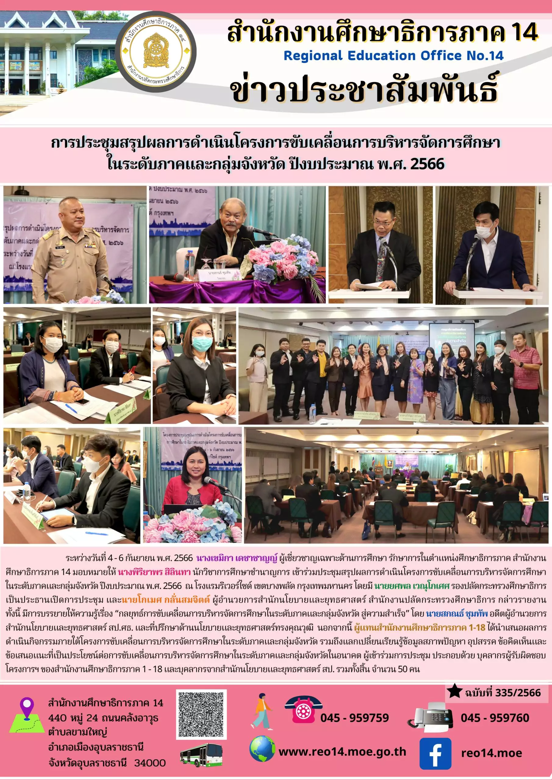 06 ก.ย. 66 ศธภ.14 ร่วมประชุมสรุปผลการดำเนินโครงการขับเคลื่อนการบริหารจัดการศึกษาในระดับภาคและกลุ่มจังหวัด ปีงบประมาณ พ.ศ. 2566