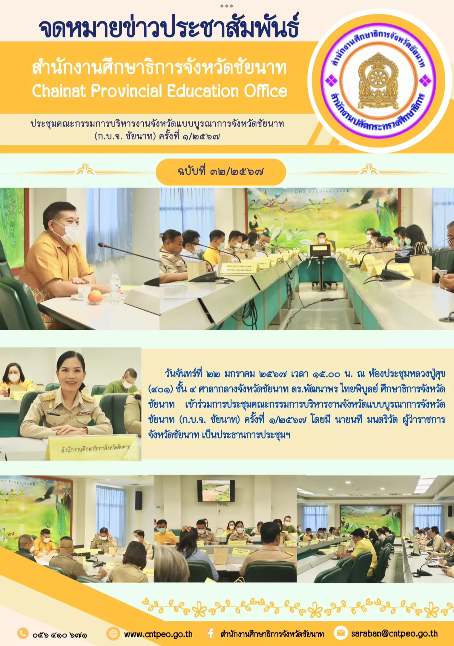 22 ม.ค. 67 (ศธจ.ชัยนาท) ประชุมคณะกรรมการบริหารงานจังหวัดแบบบูรณาการจังหวัดชัยนาท (ก.บ.จ. ชัยนาท) ครั้งที่ 1/2567