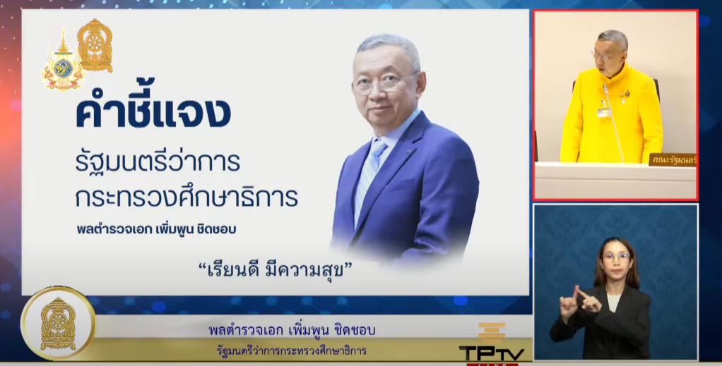 21 มิถุนายน 2567/ พล.ต.อ.เพิ่มพูน ชิดชอบ รัฐมนตรีว่าการกระทรวงศึกษาธิการ ได้ชี้แจงคำของบประมาณฯ ในการพิจารณาร่างพระราชบัญญัติงบประมาณรายจ่ายประจำปีงบประมาณ พ.ศ. 2568 (วาระที่ 1 ขั้นรับหลักการ) ณ อาคารรัฐสภา