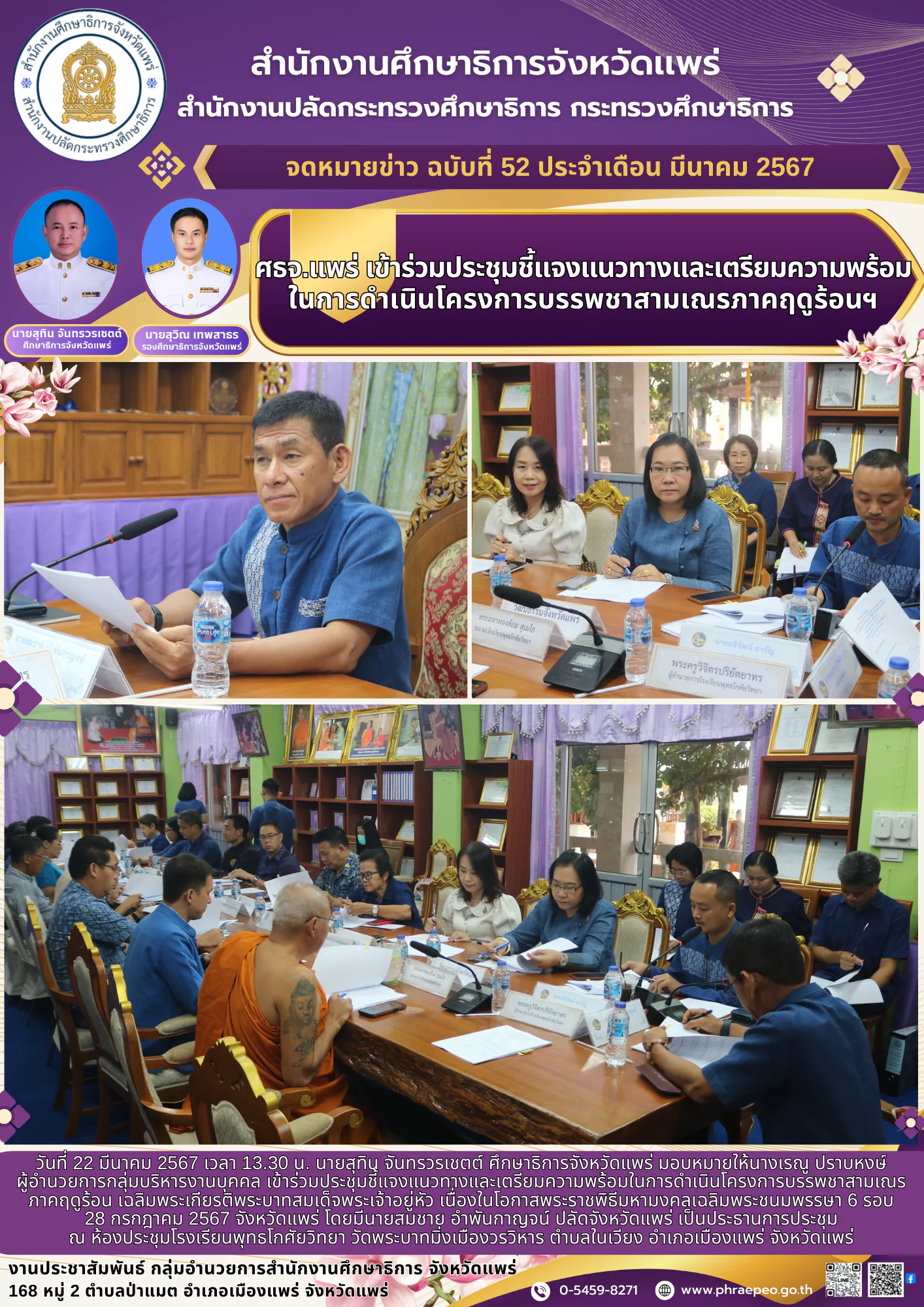 ศึกษาธิการจังหวัดเพชรบุรี เป็นประธานพิธีเปิดการประชุมเชิงปฏิบัติการผู้บริหารสถานศึกษาและครูวิชาการ เพื่อจัดทำโครงการรองรับรูปแบบ/แนวทางการพัฒนาการจัดการเรียนรู้ภายใต้