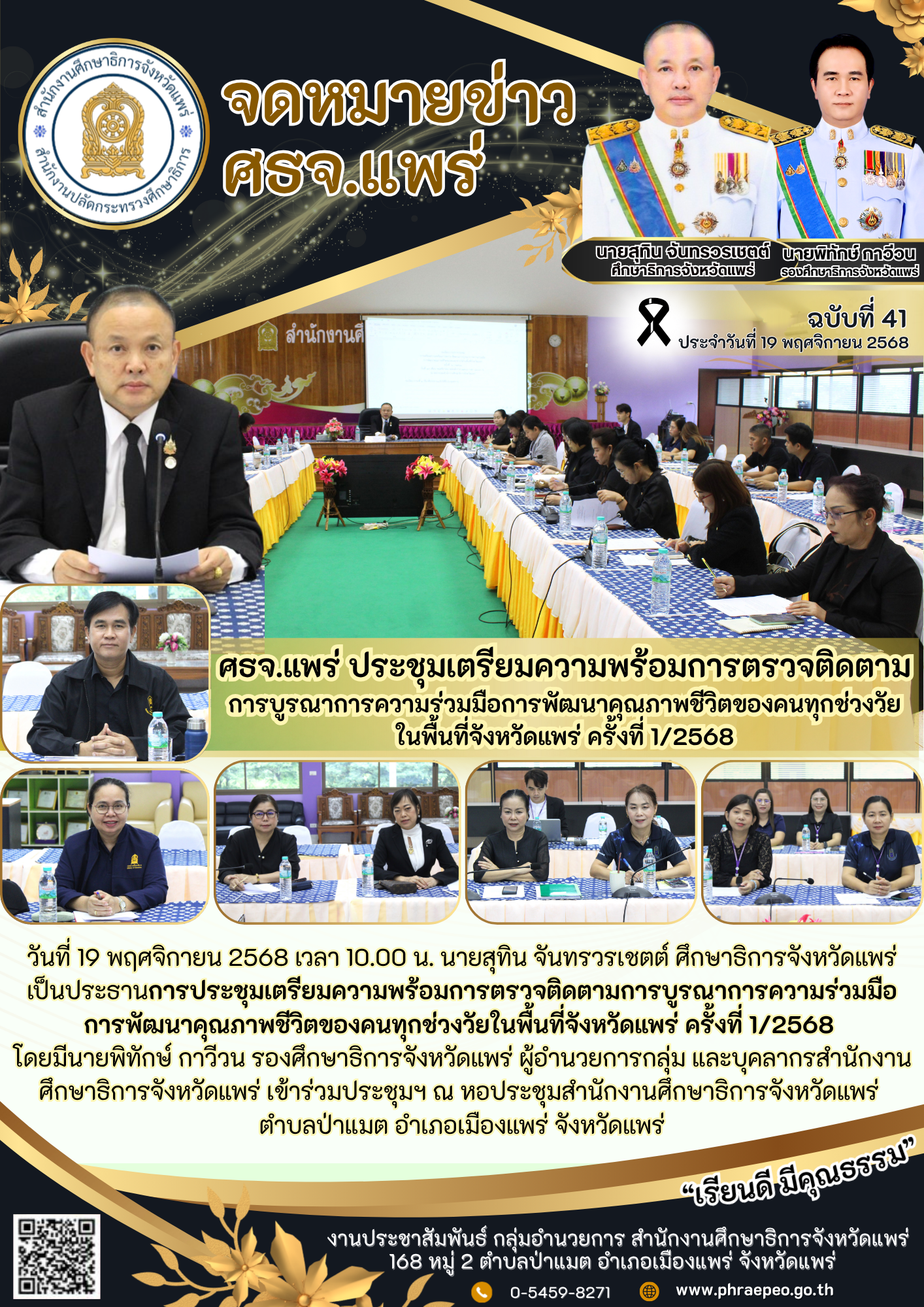 วันที่ 20 พฤศจิกายน 2568 นางกษมา แสนอ่อน ศึกษาธิการจังหวัดสระแก้ว พร้อมด้วยคณะศึกษานิเทศก์ ผู้อำนวยการกลุ่มงานสำนักงานศึกษาธิการจังหวัดสระแก้ว ร่วมนำเสนอผลการสนับสนุนและการขับเคลื่อนงานร่วมกับ มหาวิทยาลัยราชภัฎวไลยอลงกรณ์ ในพระบรมราชูปถัมภ์ สระแก้ว เกี่ยวกับมหาวิทยาลัยราชภัฎวไลยอลงกรณ์ฯ ได้ร่วมกับสำนักงานศึกษาธิการจังหวัดสระแก้วด้านการพัฒนาคุณภาพการศึกษาจังหวัดสระแก้ว การจัดทำและขับเคลื่อนแผนพื้นที่นวัตกรรมการศึกษาจังหวัดสระแก้ว ในการประชุมตรวจติดตามผลการดำเนินงานของมหาวิทยาลัยราชภัฎวไลยอลงกรณ์ ในพระบรมราชูปถัมภ์ สระแก้ว ประจำปีงบประมาณ พ.ศ.2568 ผ่านระบบออนไลน์