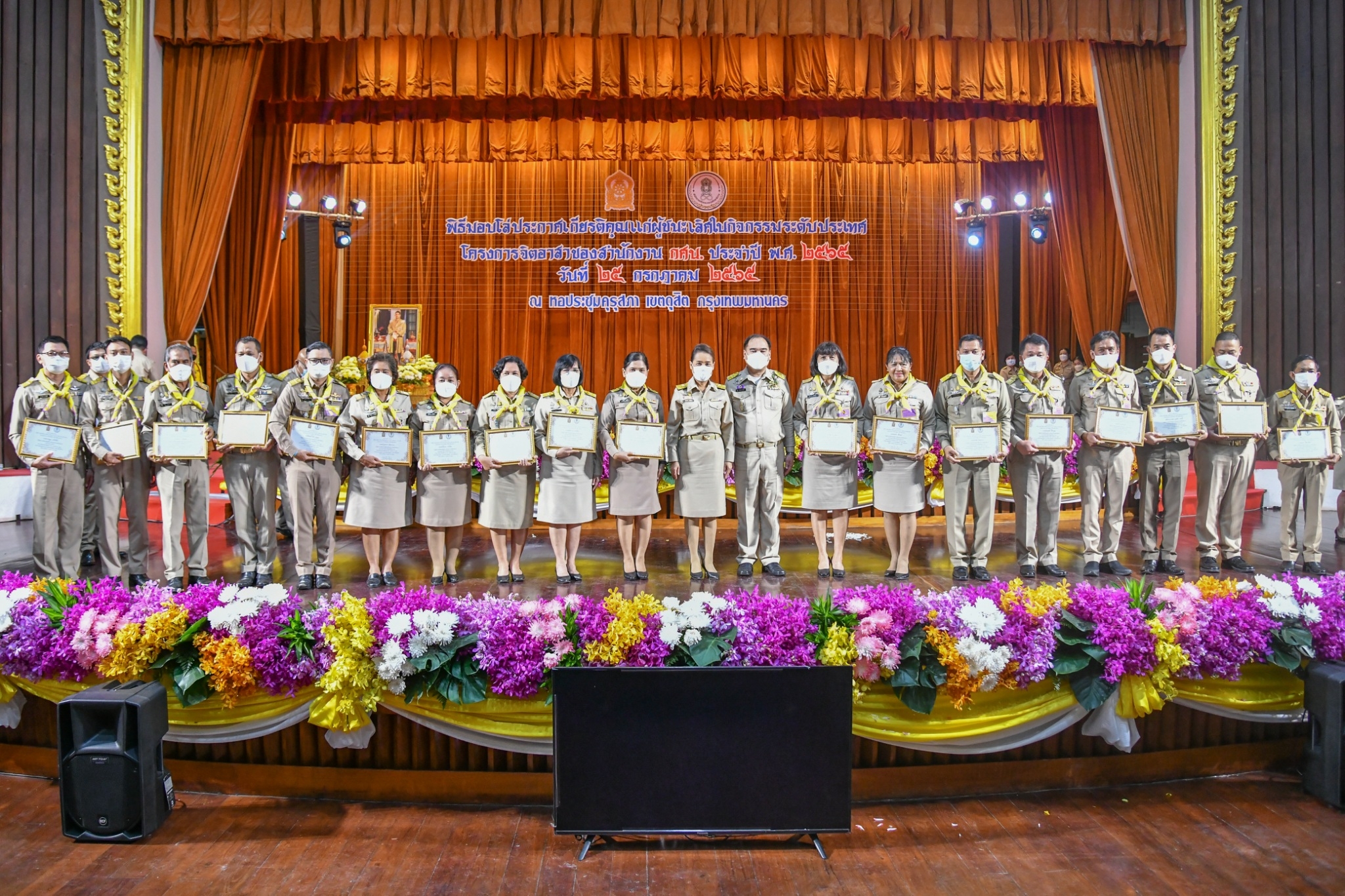 25 กรกฎาคม 2565, ห้องประชุมบุณยเกศ หอประชุมคุรุสภา / นางสาวตรีนุช เทียนทอง รมว.ศธ. เป็นประธานพิธีเปิดกิจกรรมในโครงการจิตอาสาของสำนักงาน กศน. ประจำปีงบประมาณ พ.ศ. 2565 พร้อมด้วยคุณหญิงกัลยา โสภณพนิช และนางกนกวรรณ วิลาวัลย์ รมช.ศธ., นางสาวสมปรารถนา วิกรัยเจิดเจริญ ที่ปรึกษา รมว.ศธ., นายสุทิน แก้วพนา รองปลัด ศธ., นายวัลลภ สงวนนาม เลขาธิการ กศน. ตลอดจนผู้บริหารและเจ้าหน้าที่ ศธ. เข้าร่วม
