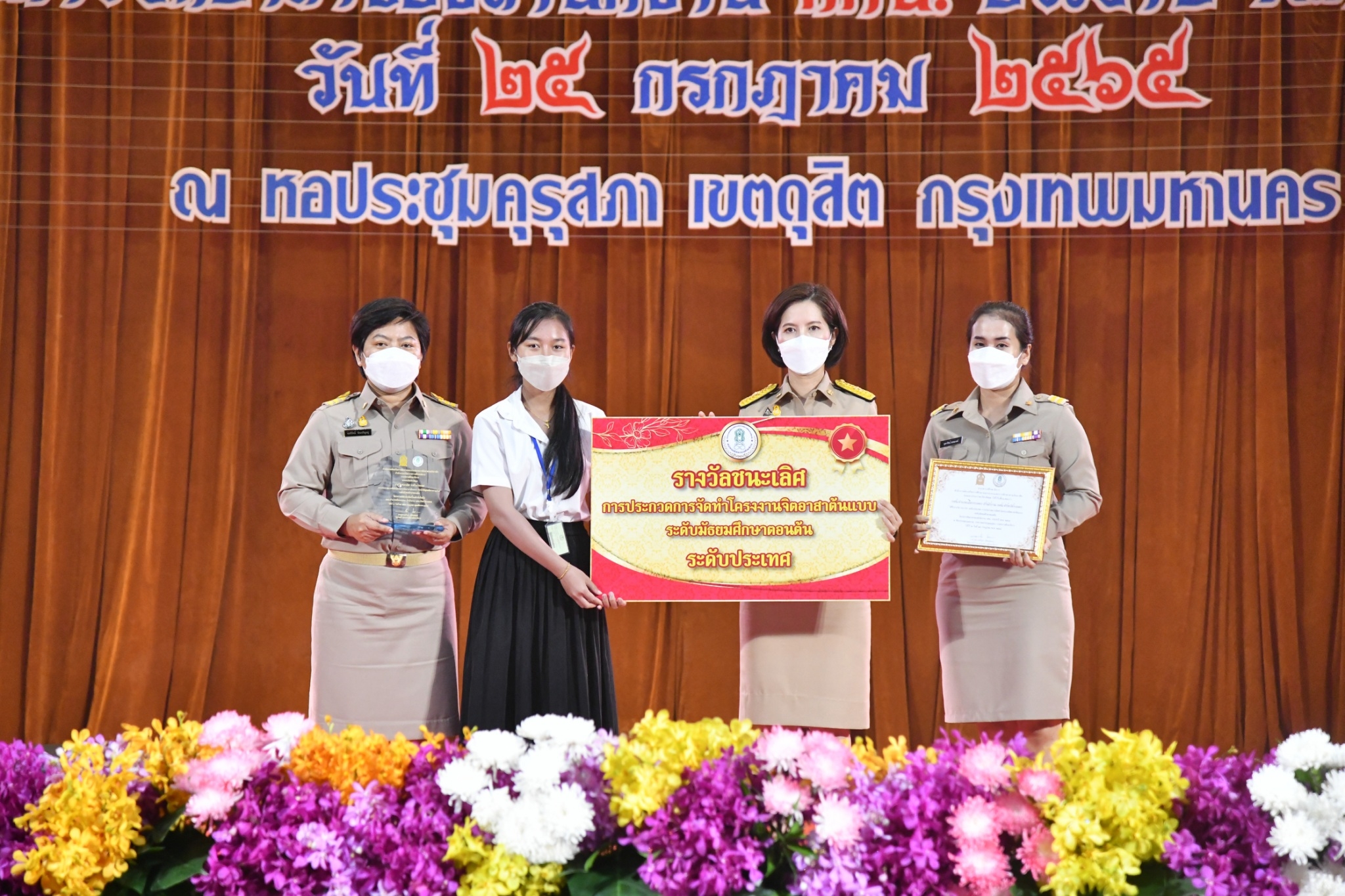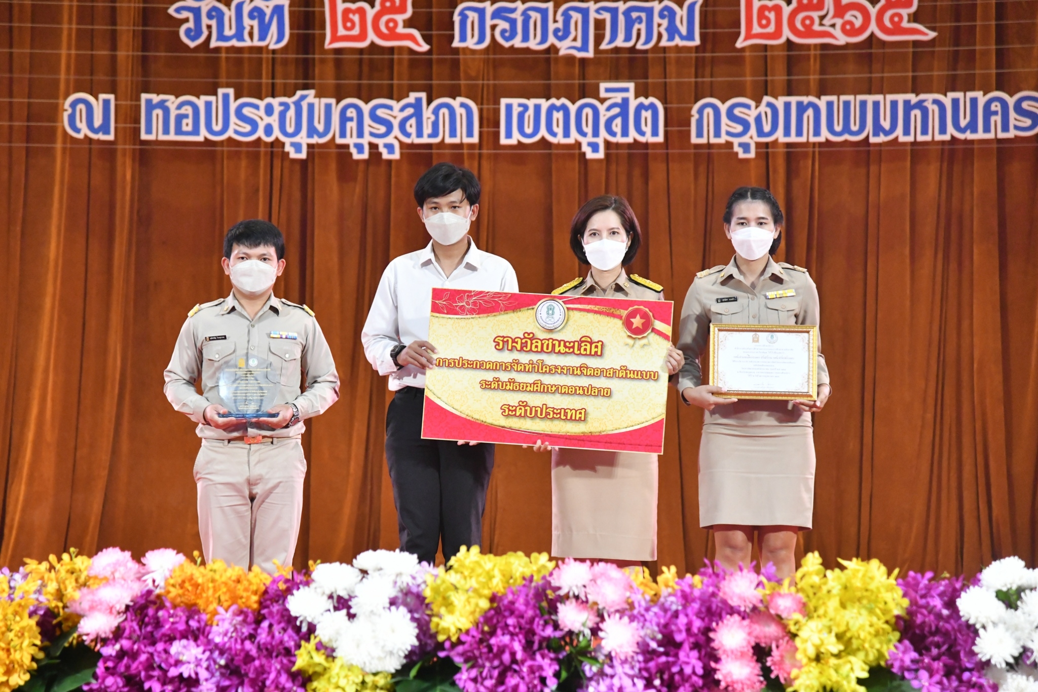 – ระดับมัธยมศึกษาตอนปลาย รางวัลชนะเลิศ ทีมชมรม TO BE NUMBER ONE กศน.อำเภอสุไหงโก-ลก สำนักงาน กศน.จังหวัดนราธิวาส - การประกวดโครงงานจิตอาสาต้นแบบ ระดับประเทศ