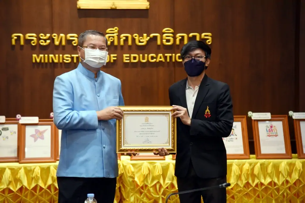ปลัด ศธ. ‘สุภัทร’ มอบรางวัลให้แก่นักเรียน นักศึกษา และเยาวชน ที่ชนะการประกวดออกแบบตราสัญลักษณ์งานวันเด็กแห่งชาติ พร้อมชื่นชมความสามารถเยาวชนไทย แนะเด็กเรียนรู้แนวคิดที่แตกต่าง บนความมุ่งหมายเดียวกัน สำหรับรางวัลชนะเลิศ “รอยยิ้มพิมพ์ใจ” ผลงานนักศึกษามหาวิทยาลัยศิลปากร จะใช้เป็นตราสัญลักษณ์การจัดงานเป็นเวลา 5 ปี ตั้งแต่ปี 2566-2570