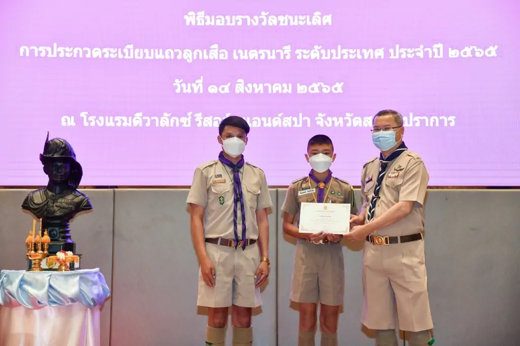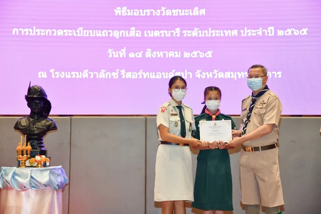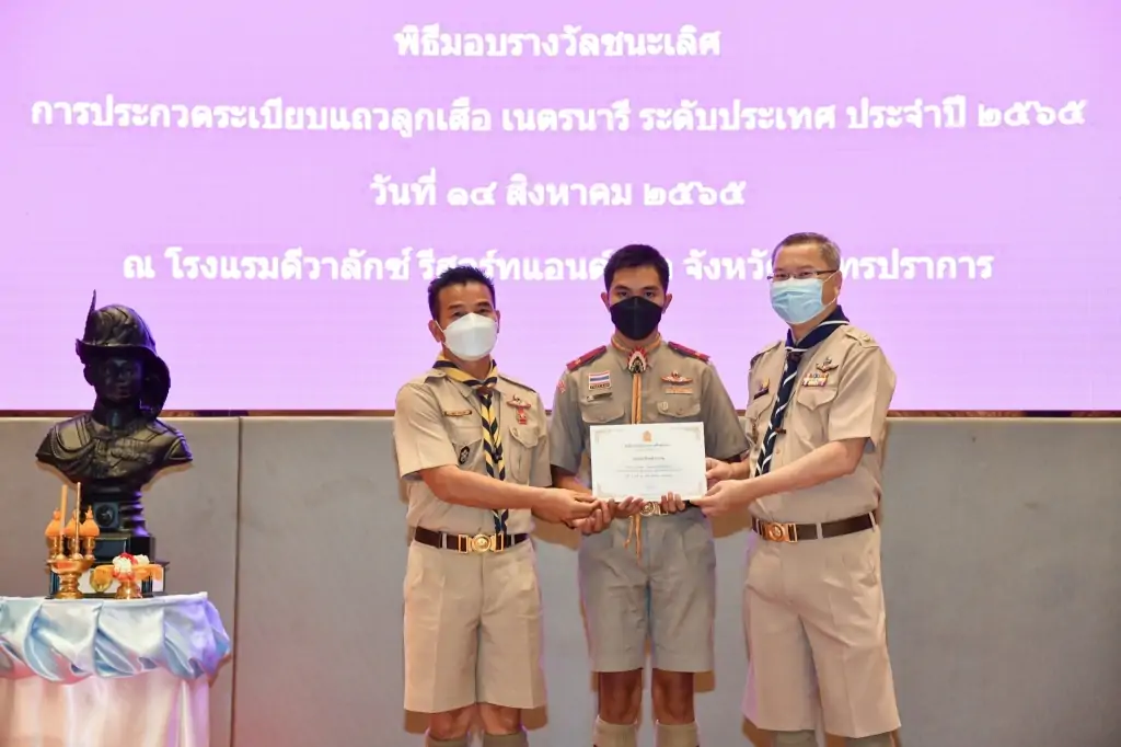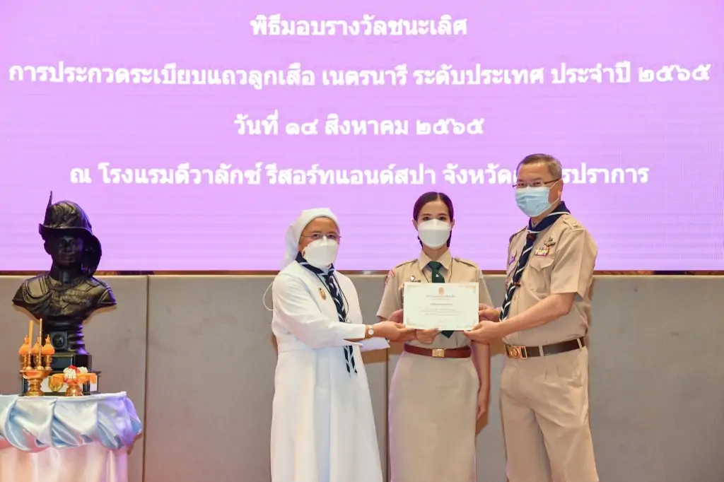 (14 สิงหาคม 2565) นายสุภัทร จำปาทอง ปลัดกระทรวงศึกษาธิการ เป็นประธานพิธีมอบโล่รางวัลและเกียรติบัตรสถานศึกษาที่ได้รับรางวัลการประกวดระเบียบแถวลูกเสือ เนตรนารี ระดับประเทศ ประจำปี 2565 จำนวนทั้งสิ้น 24 รางวัล ณ โรงแรมดีวาลักข์ รีสอร์ทแอนด์สปา จังหวัดสมุทรปราการ โดยมีนายอำนาจ สายฉลาด ผู้อำนวยการสำนักการลูกเสือ ยุวกาชาดและกิจการนักเรียน รวมทั้งคณะกรรมการดำเนินงาน ผู้บริหารสถานศึกษา ครู อาจารย์ ลูกเสือ เนตรนารี เข้าร่วมพิธี