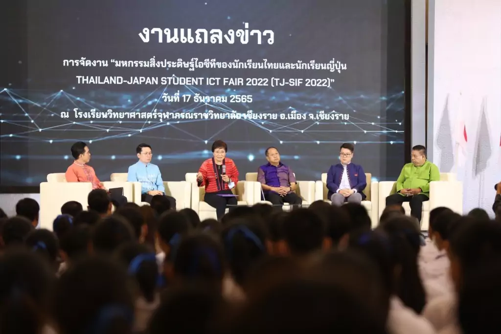 (17 ธันวาคม 2565) ดร.คุณหญิงกัลยา โสภณพนิช รัฐมนตรีช่วยว่าการกระทรวงศึกษาธิการ เป็นประธานในพิธีเปิดงานแถลงข่าว การจัดงานมหกรรมสิ่งประดิษฐ์ไอซีทีของนักเรียนไทยและนักเรียนญี่ปุ่น Thailand – Japan Student ICT Fair 2022 (TJ-SIF 2022) ณ โรงเรียนวิทยาศาสตร์จุฬาภรณราชวิทยาลัย เชียงราย จังหวัดเชียงราย