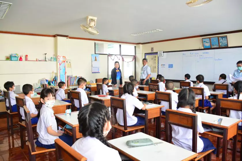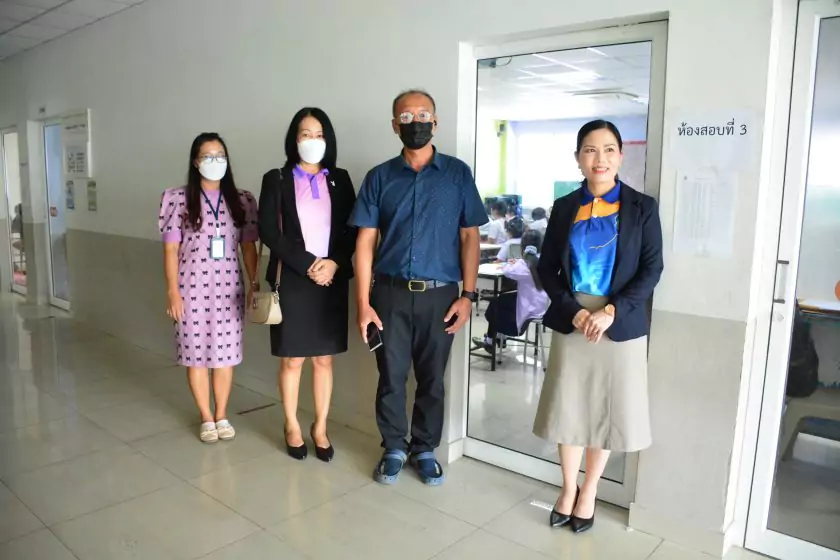 วันพุธที่ ๑๕ มีนาคม ๒๕๖๖ เวลา ๐๙.๔๕ น. ดร.พัฒนาพร ไทยพิบูลย์ รองศึกษาธิการสุพรรณบุรี พร้อมด้วยนางสาวแสงเพ็ญ พุ่มกุมาร ศึกษานิเทศก์ชำนาญการพิเศษ และนางสาวสุกัญญา พลนิกร นักทรัพยากรบุคคลชำนาญการพิเศษ ตรวจเยี่ยมสนามสอบการประเมินคุณภาพผู้เรียน (NT) ชั้นประถมศึกษาปีที่ ๓ ปีการศึกษา ๒๕๖๕ โดยวัดความสามารถพื้นฐานสำคัญ ๒ ด้าน คือ ด้านภาษาไทย และด้านคณิตศาสตร์ เพื่อให้การสอบเป็นไปอย่างเรียบร้อย “โปร่งใส ยุติธรรม มีประสิทธิภาพ” พร้อมให้กำลังใจแก่นักเรียนที่เข้าสอบและคณะกรรมการที่ทำหน้าที่ดำเนินการสอบ ณ สนามสอบโรงเรียนวิทยาศึกษา โรงเรียนศุภลักษณ์ และโรงเรียนสหวิทย์อำเภอ เมืองสุพรรณบุรี จังหวัดสุพรรณบุรี